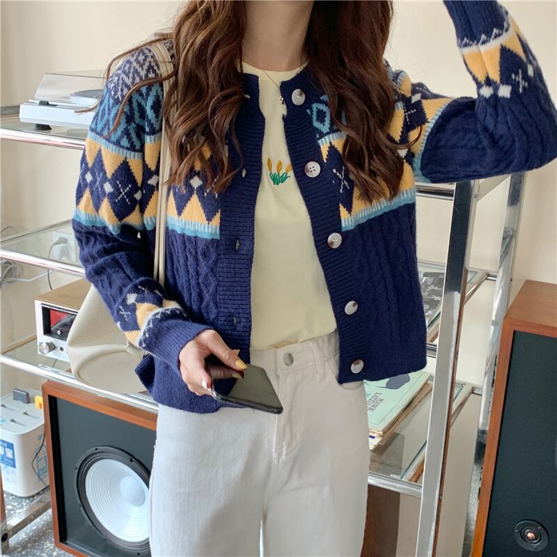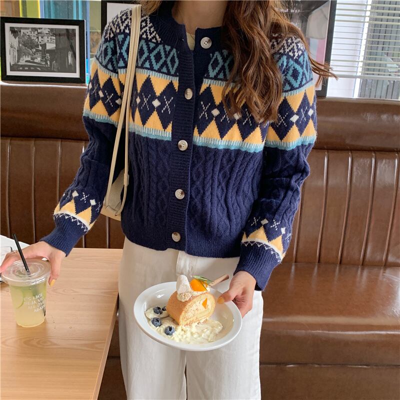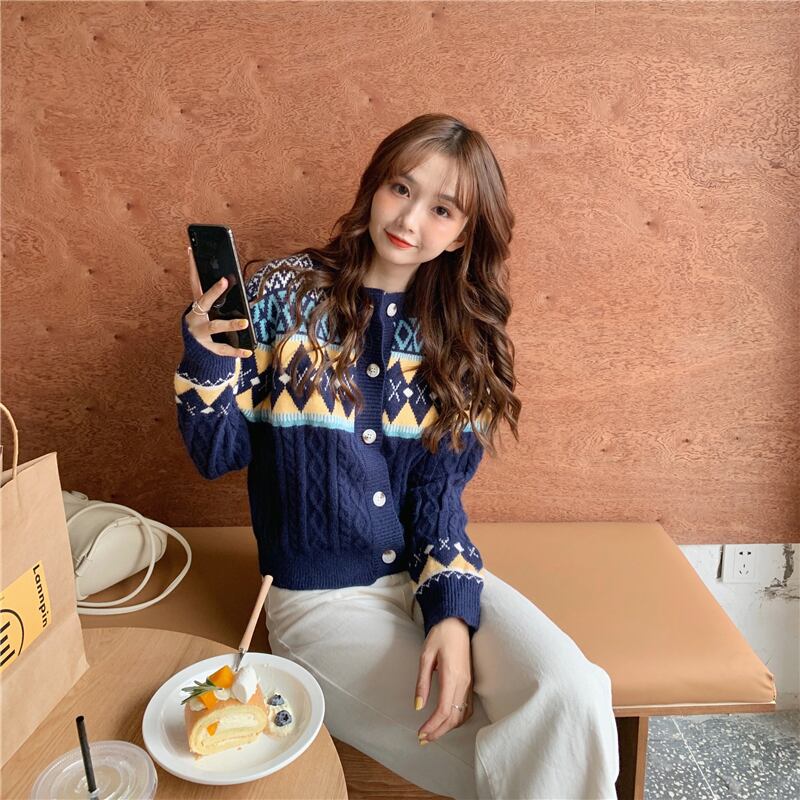 ✞ スタンダードジャカードセーター カーディガン♡ラウンドネックカジュアルニットジャケット 大人女子☆ ロング レトロ ✞ゴスロリ SM ミリ 甘ロリ クラロリ 和ロリ エレガント 黒ロリ 姫ロリ 華ロリ BB-BB43382963301