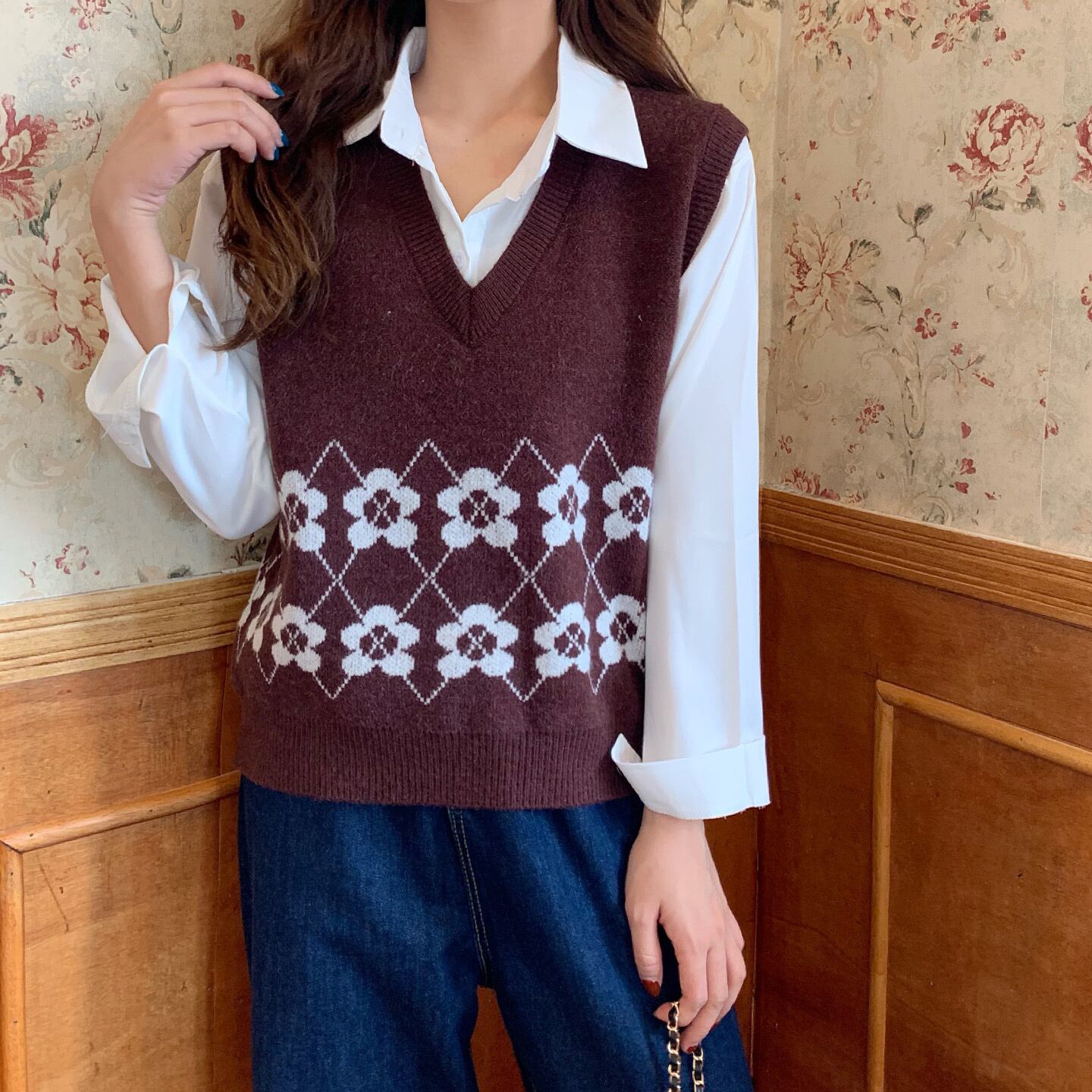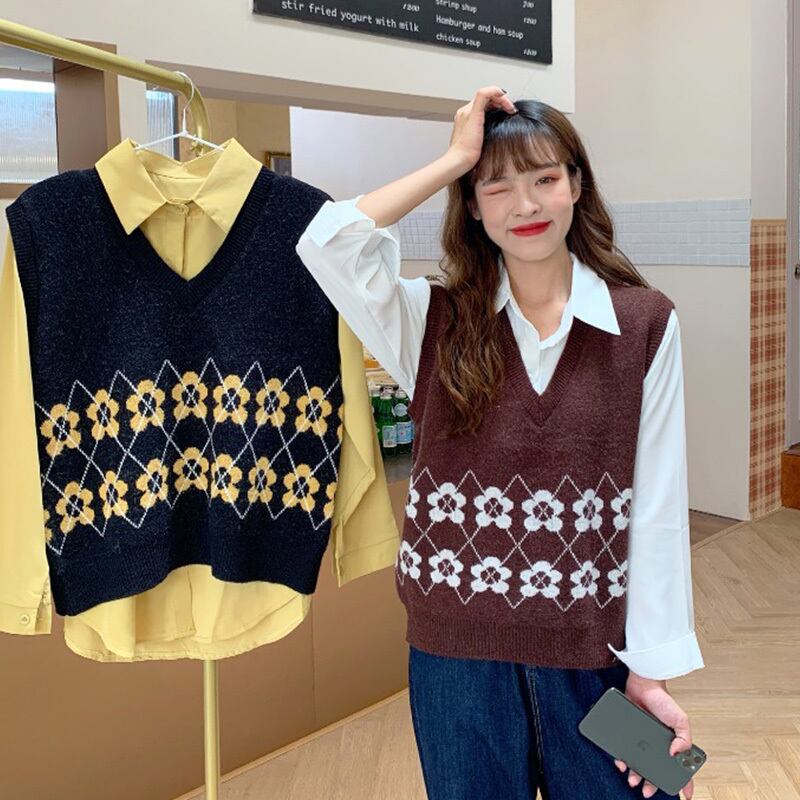 ✞ ソリッド カラーシャツブラウス大人女子☆スタンダードVネック花柄プルオーバー ニット ロング レトロ ソリッドカラー フラワーデザイン ✞ゴスロリ SM ミリ 甘ロリ クラロリ 和ロリ エレガント 黒ロリ 姫ロリ 華ロリ BB-BB96105883666