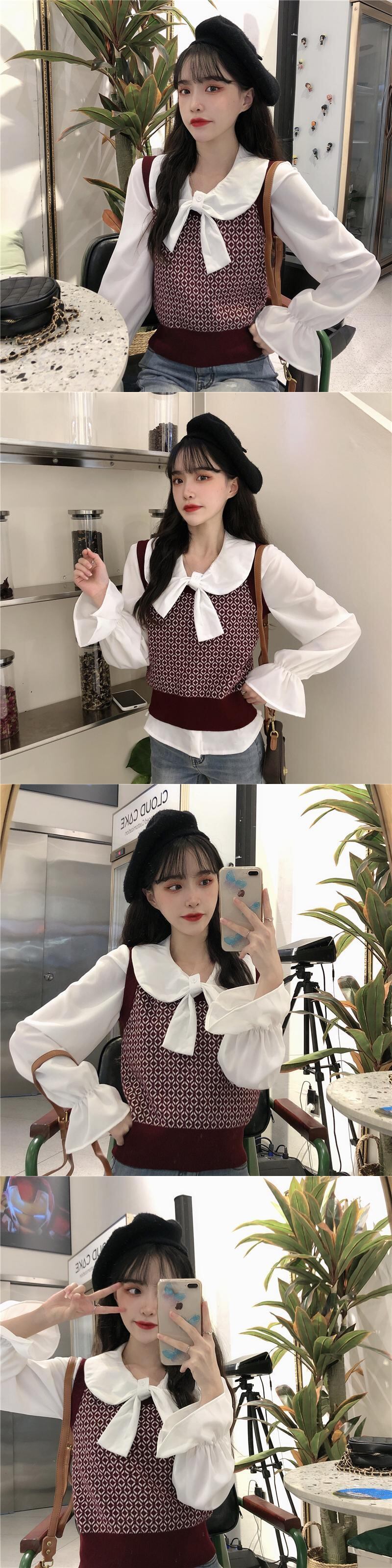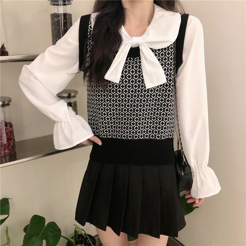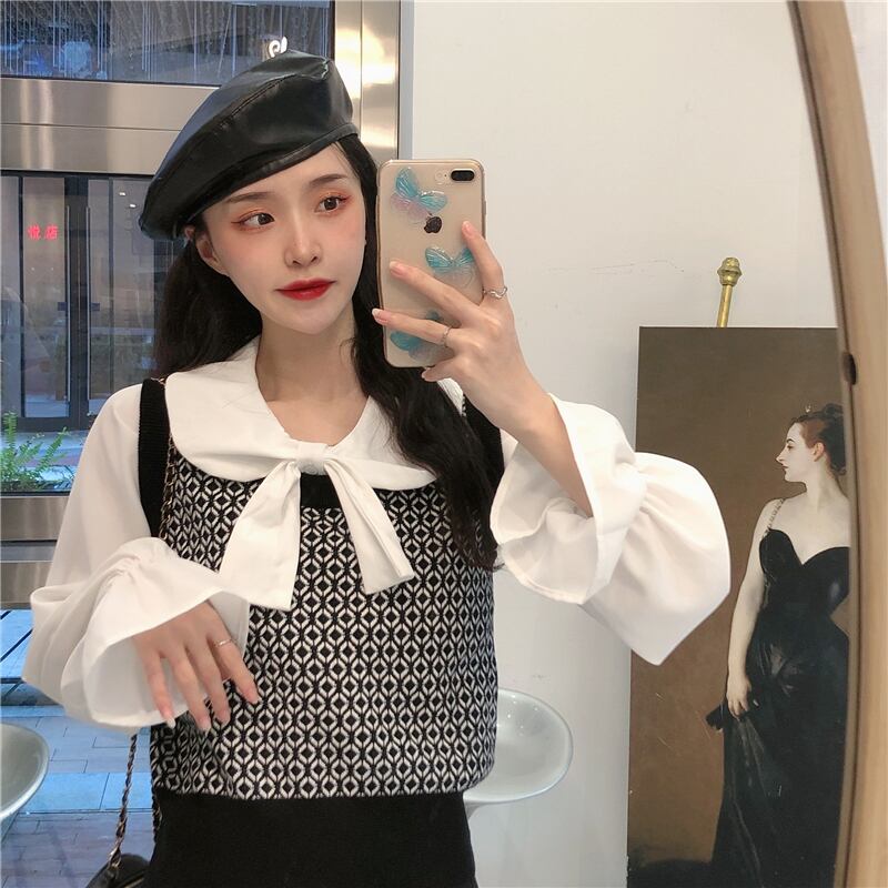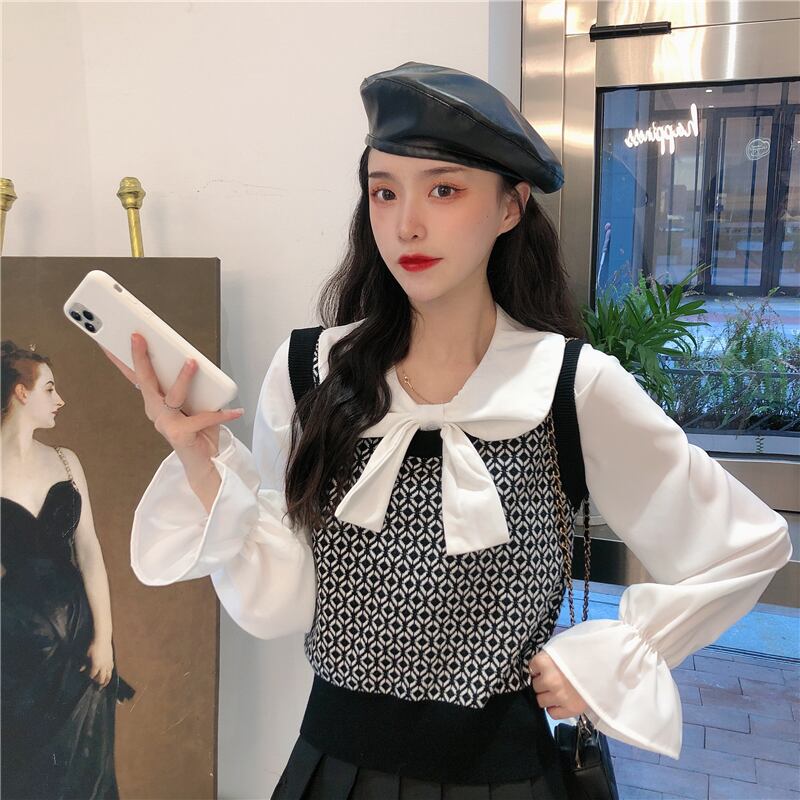 ✞ スタンダードチェック柄ニットセーター 白シャツブラウス ホワイト レトロ スウィート ✞ゴスロリ SM ミリ 甘ロリ クラロリ 和ロリ エレガント 黒ロリ 姫ロリ 華ロリ BB-BB97692639113