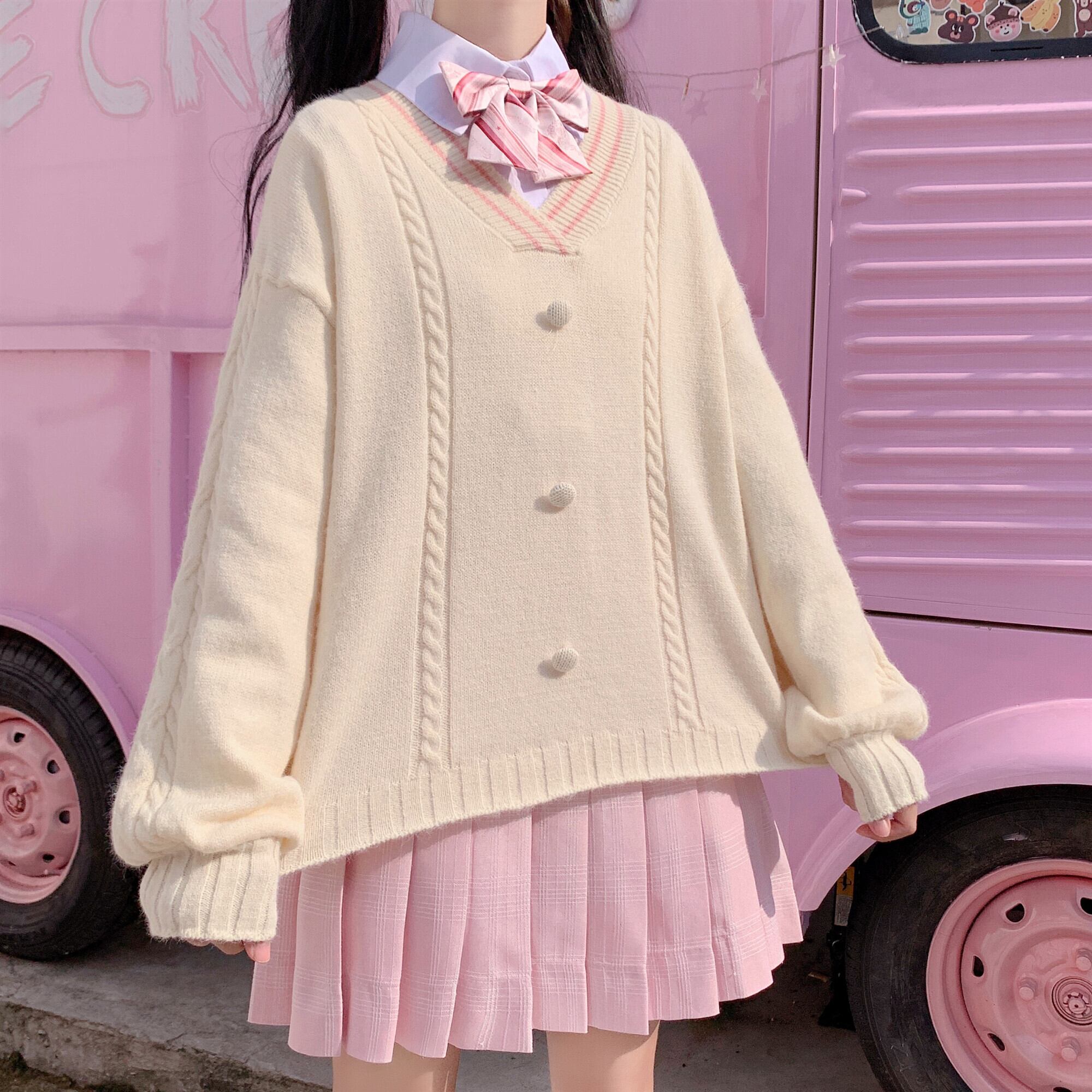 ✞ ♡Vネックセーター ウィンターニットトップス ロング スウィート 冬物 ✞ゴスロリ SM ミリ 甘ロリ クラロリ 和ロリ エレガント 黒ロリ 姫ロリ 華ロリ BB-BB57245807375