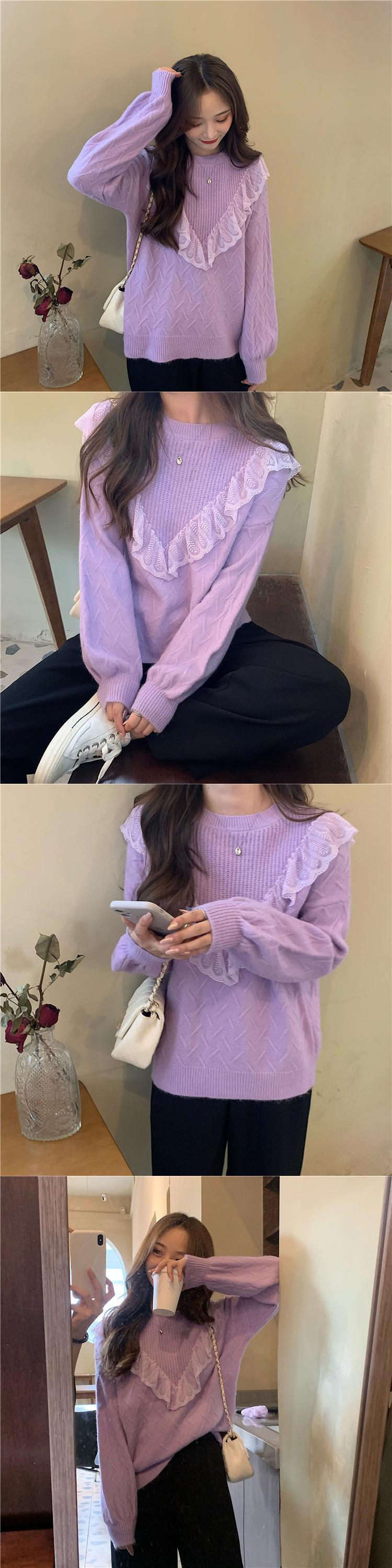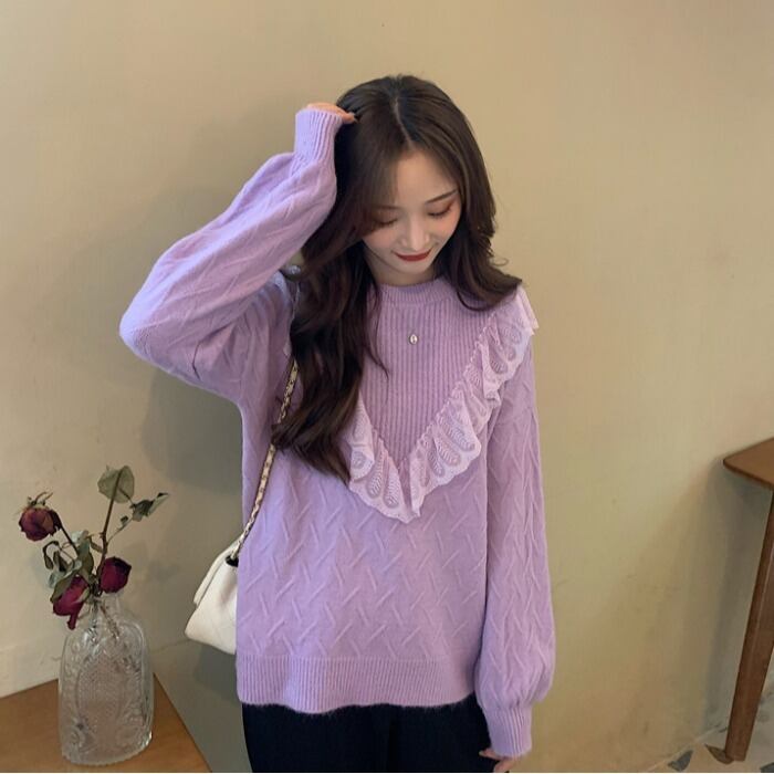 ✞ ウィンターレースラウンドネックプルオーバー セーター 大人女子☆カジュアルソリッド カラー ロング 冬物 ソリッドカラー ✞ゴスロリ SM ミリ 甘ロリ クラロリ 和ロリ エレガント 黒ロリ 姫ロリ 華ロリ BB-BB61543731531
