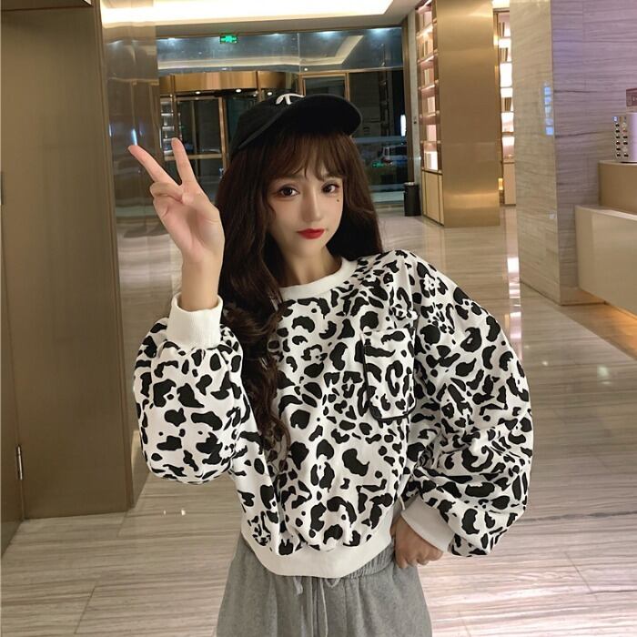 ✞ スタンダードレオパードプリント柄セーター ショートラウンドネックトップス ロング レトロ ✞ゴスロリ SM ミリ 甘ロリ クラロリ 和ロリ エレガント 黒ロリ 姫ロリ 華ロリ BB-BB24856131382