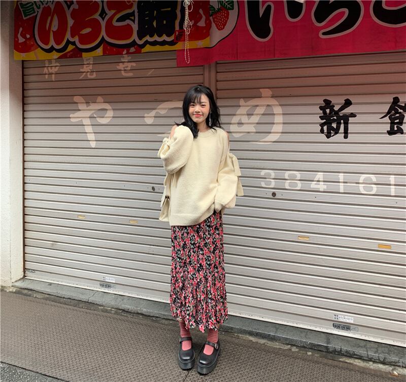 ✞ ウィンターセーター 花柄スカート リボン スウィート 冬物 オフショルダー ✞ゴスロリ SM ミリ 甘ロリ クラロリ 和ロリ エレガント 黒ロリ 姫ロリ 華ロリ BB-BB2453144951