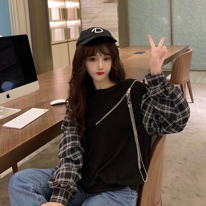 ✞ オータムチェック柄セーター カジュアルトップス ロング 秋物 ステッチ ✞ゴスロリ SM ミリ 甘ロリ クラロリ 和ロリ エレガント 黒ロリ 姫ロリ 華ロリ BB-BB87620601256