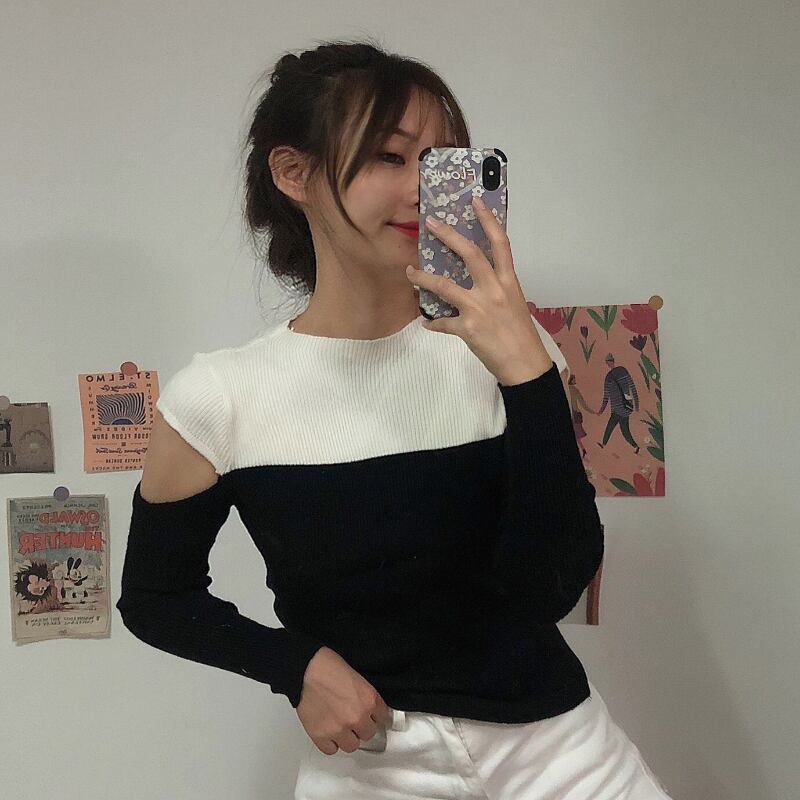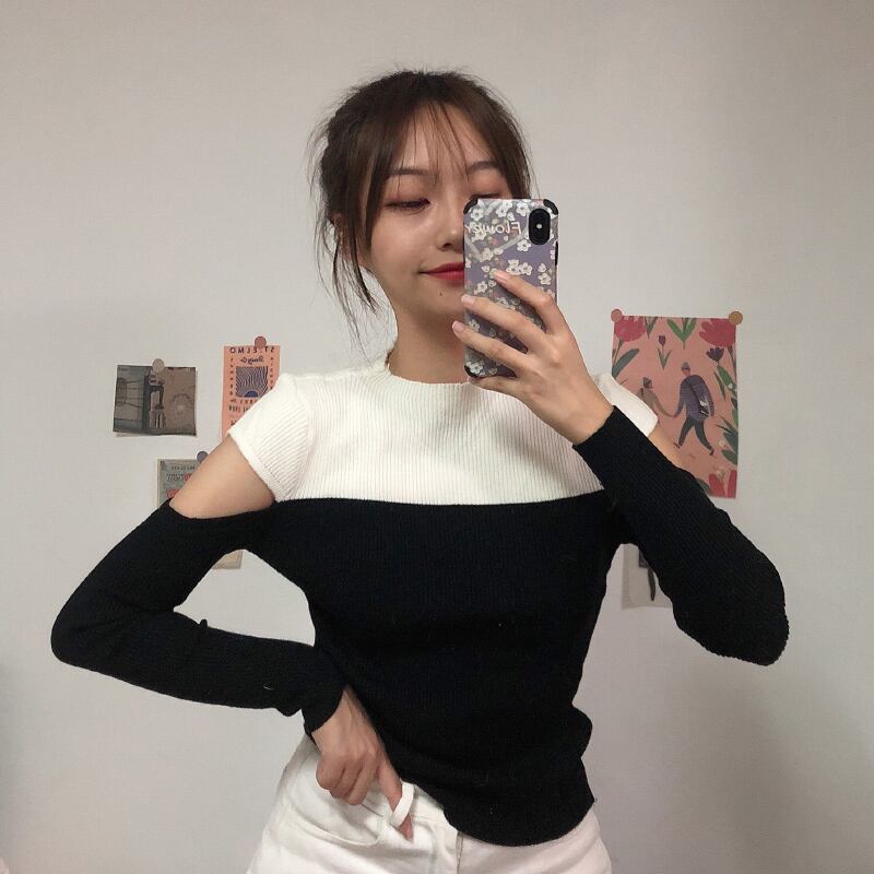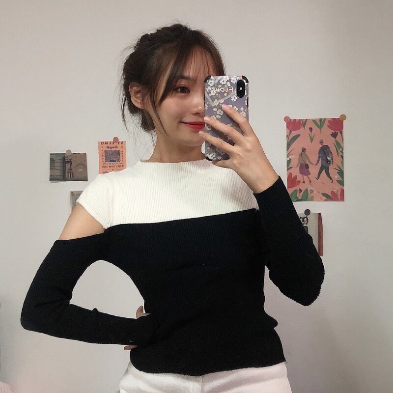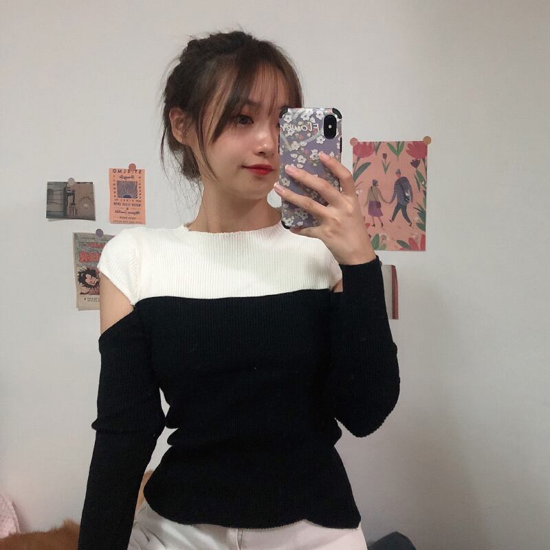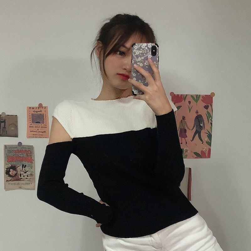 ✞ ♡カラーセーター ♥カワイイ♥スリムトップス ロング オフショルダー ✞ゴスロリ SM ミリ 甘ロリ クラロリ 和ロリ エレガント 黒ロリ 姫ロリ 華ロリ BB-BB21551230307