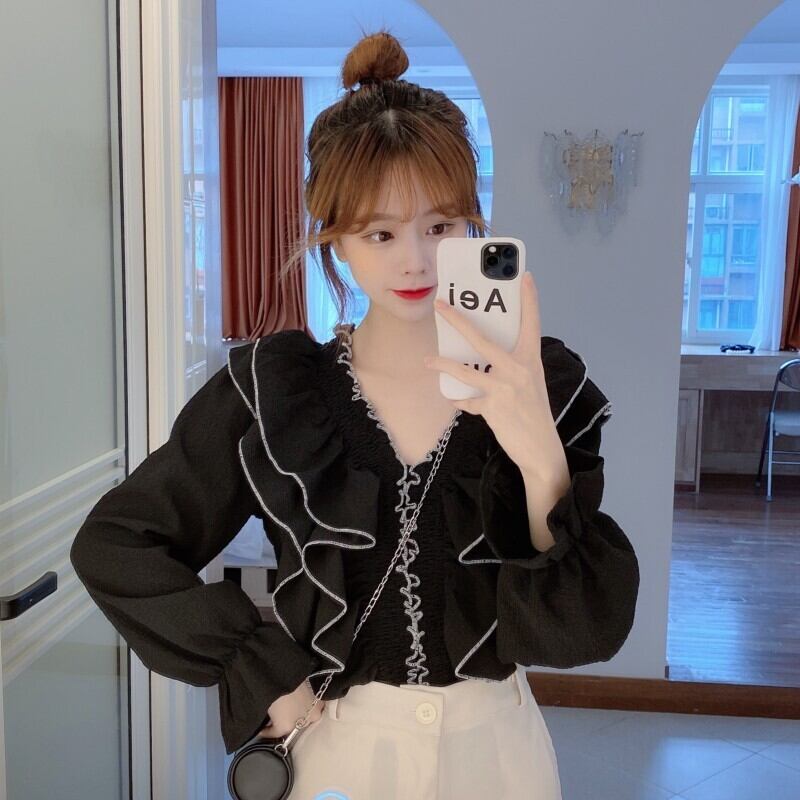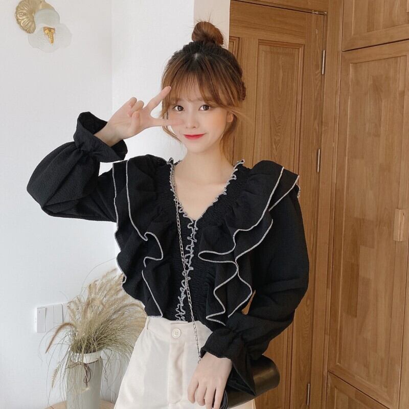 ✞ スリーブシャツブラウスVネックラッフル白 ロング ホワイト スウィート ステッチ ✞ゴスロリ SM ミリ 甘ロリ クラロリ 和ロリ エレガント 黒ロリ 姫ロリ 華ロリ BB-BB33931549278