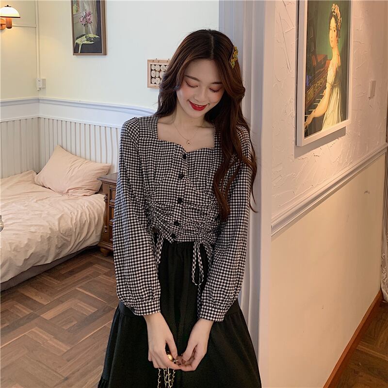 ✞ スタンダード♡ギャザー長袖スリーブショートチェック柄シャツブラウス大人女子☆ ロング レトロ スクウェア ✞ゴスロリ SM ミリ 甘ロリ クラロリ 和ロリ エレガント 黒ロリ 姫ロリ 華ロリ BB-BB58759093677