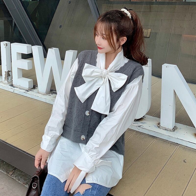 ✞ スタンドカラーリボン長袖スリーブ白シャツブラウス ロング ホワイト スウィート ✞ゴスロリ SM ミリ 甘ロリ クラロリ 和ロリ エレガント 黒ロリ 姫ロリ 華ロリ BB-BB61133075197