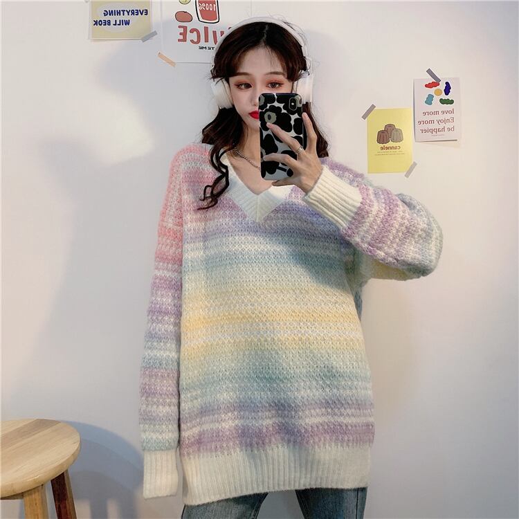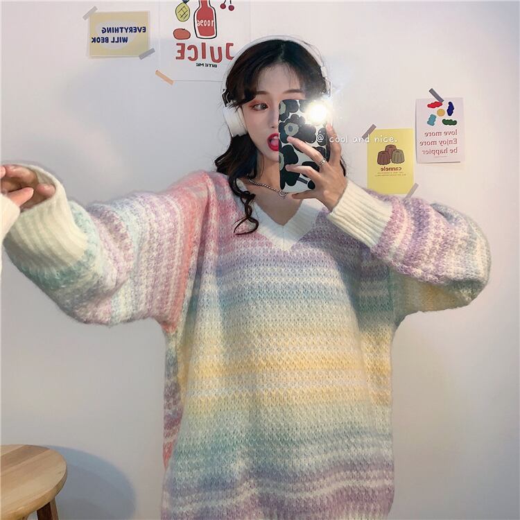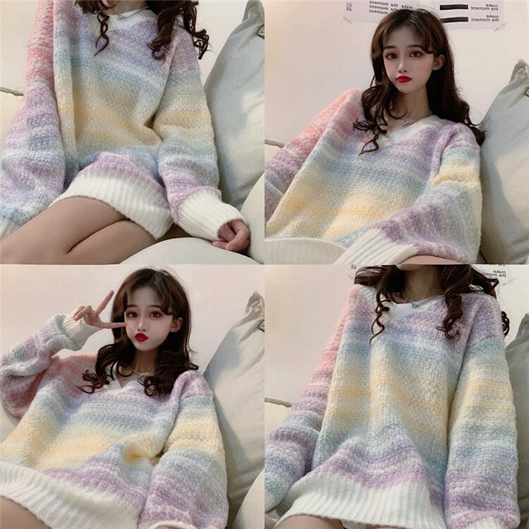 ✞ ストライプセーター ウィンター♡Vネックプルオーバー ロングニット 長袖 冬物 ✞ゴスロリ SM ミリ 甘ロリ クラロリ 和ロリ エレガント 黒ロリ 姫ロリ 華ロリ BB-BB15799108088