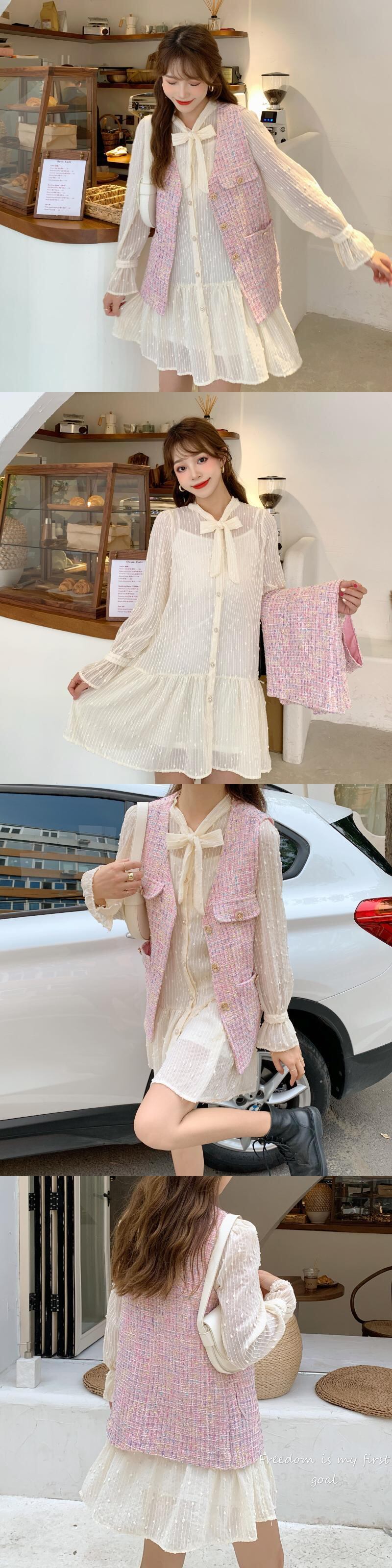 色:アプリコットシャツ(サスペンダー含む)シングル,ピンクベストワンピース