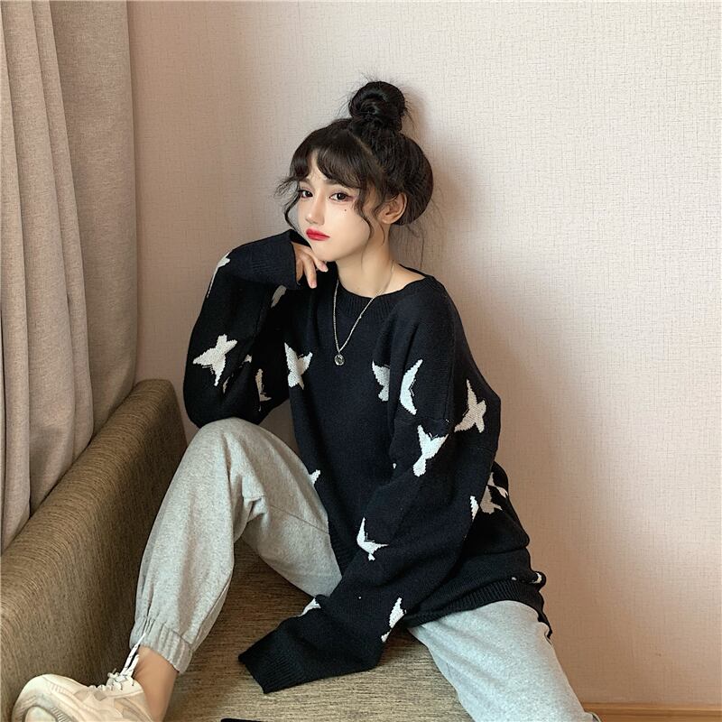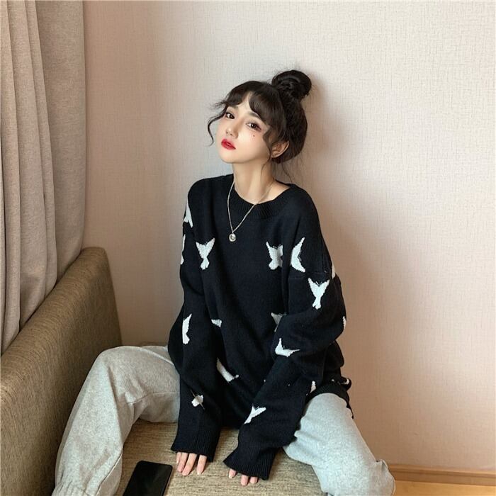 ✞ オータムウィンターButterflyデザイン ジャカードプルオーバー セーター 大人女子☆スタンダードカジュアル♡ ロング レトロ 秋物 冬物 ✞ゴスロリ SM ミリ 甘ロリ クラロリ 和ロリ エレガント 黒ロリ 姫ロリ 華ロリ BB-BB54838878354