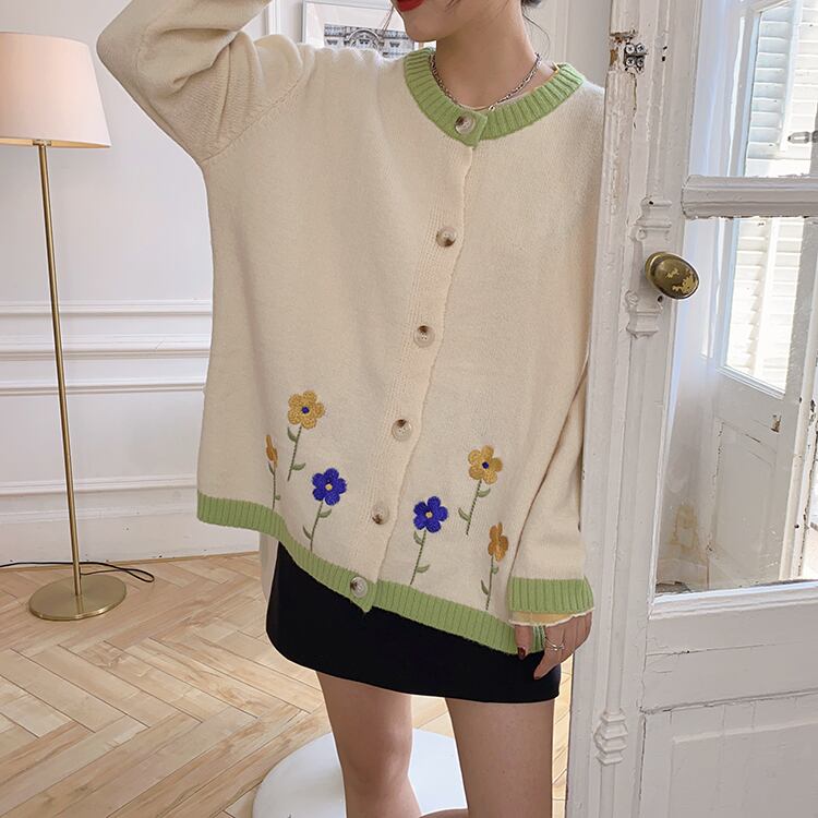 ✞ カラー花柄プリント柄セーター カーディガンジャケット ロング大人女子☆ 長袖 スウィート フラワーデザイン ✞ゴスロリ SM ミリ 甘ロリ クラロリ 和ロリ エレガント 黒ロリ 姫ロリ 華ロリ BB-BB41589960992