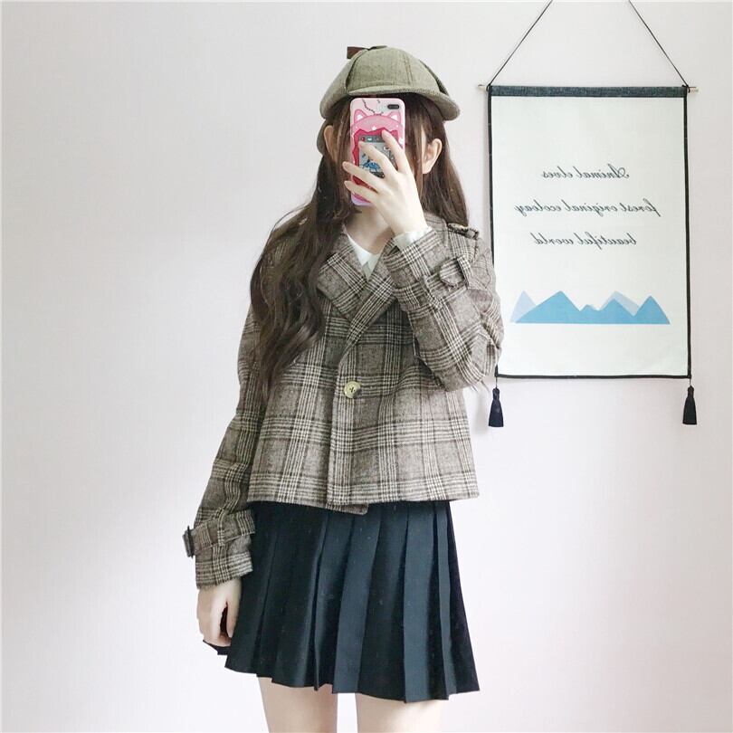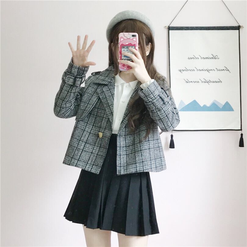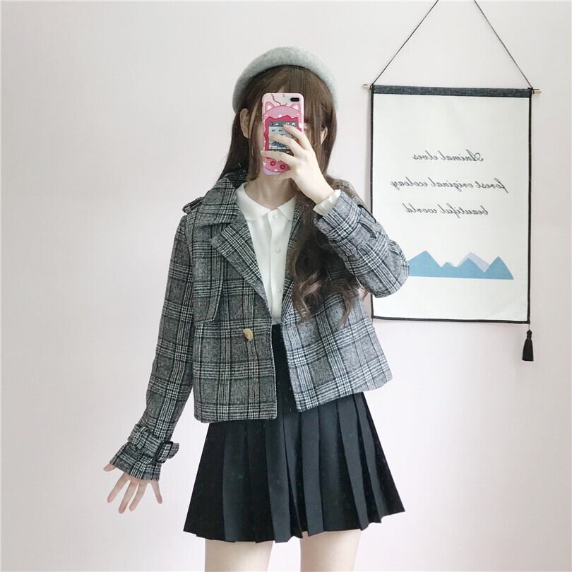 ✞ ♡スタンダードチェック柄ショートジャケット ウィンター ロング レトロ 冬物 ✞ゴスロリ SM ミリ 甘ロリ クラロリ 和ロリ エレガント 黒ロリ 姫ロリ 華ロリ BB-BB46566576645