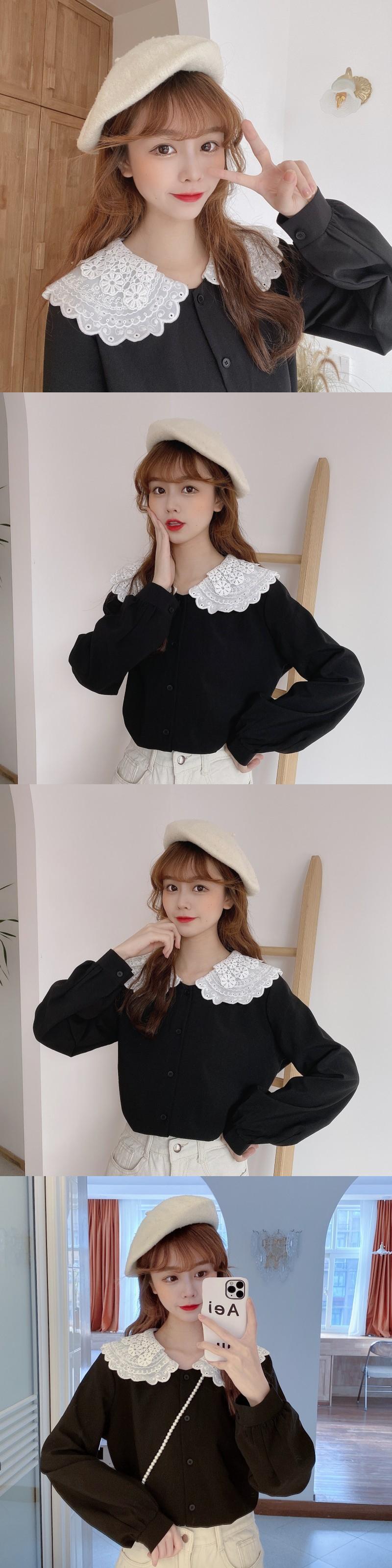 ✞ レースシャツブラウス♡長袖スリーブ ロング スウィート ✞ゴスロリ SM ミリ 甘ロリ クラロリ 和ロリ エレガント 黒ロリ 姫ロリ 華ロリ BB-BB59820580655