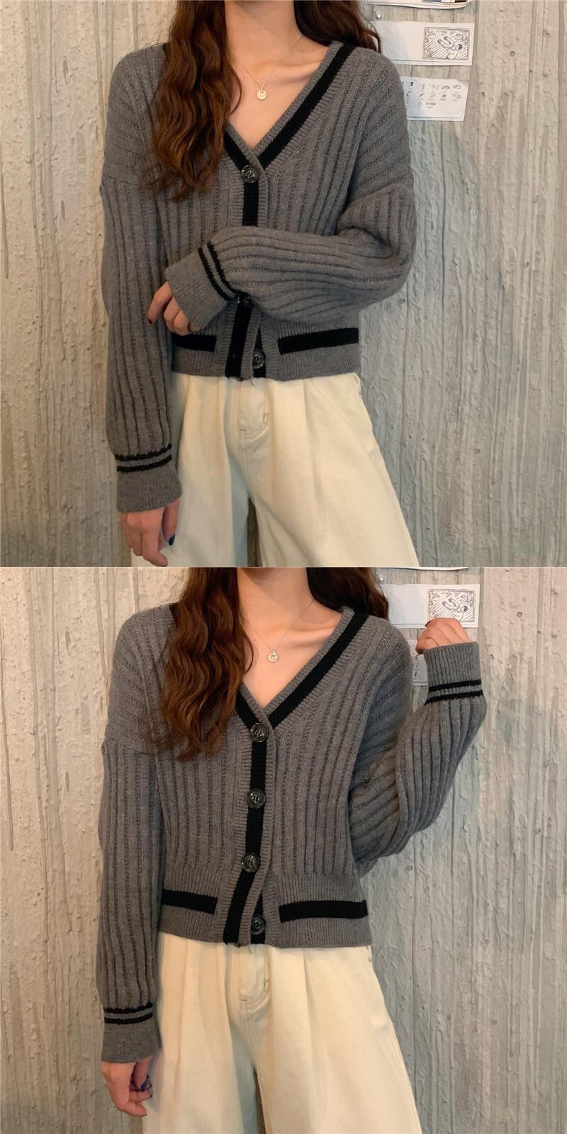 ✞ スタンダード♥カワイイ♥Vネックニットカーディガンセーター コート ジャケット ロング レトロ ✞ゴスロリ SM ミリ 甘ロリ クラロリ 和ロリ エレガント 黒ロリ 姫ロリ 華ロリ BB-BB65422185624
