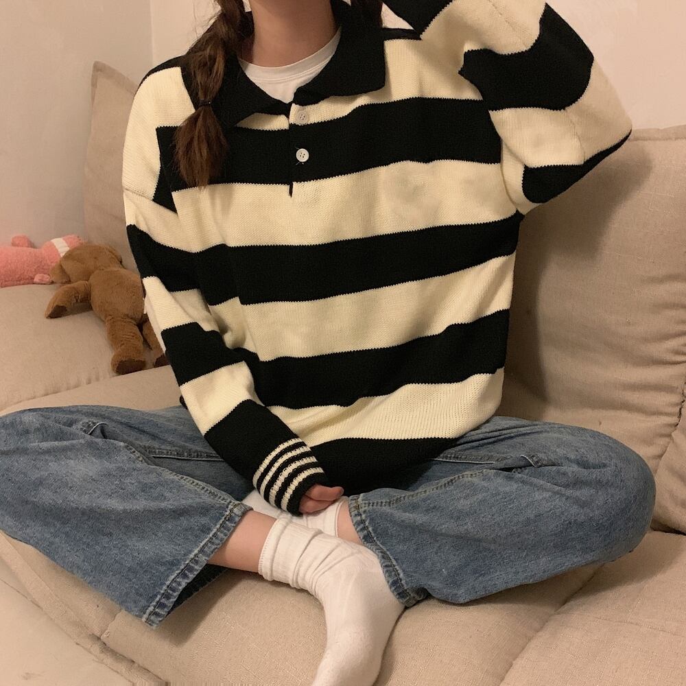 ✞ ♡ニットセーター スタンダードカラーストライプトップス 大人女子☆ ロング レトロ Oネック ✞ゴスロリ SM ミリ 甘ロリ クラロリ 和ロリ エレガント 黒ロリ 姫ロリ 華ロリ BB-BB9899682312