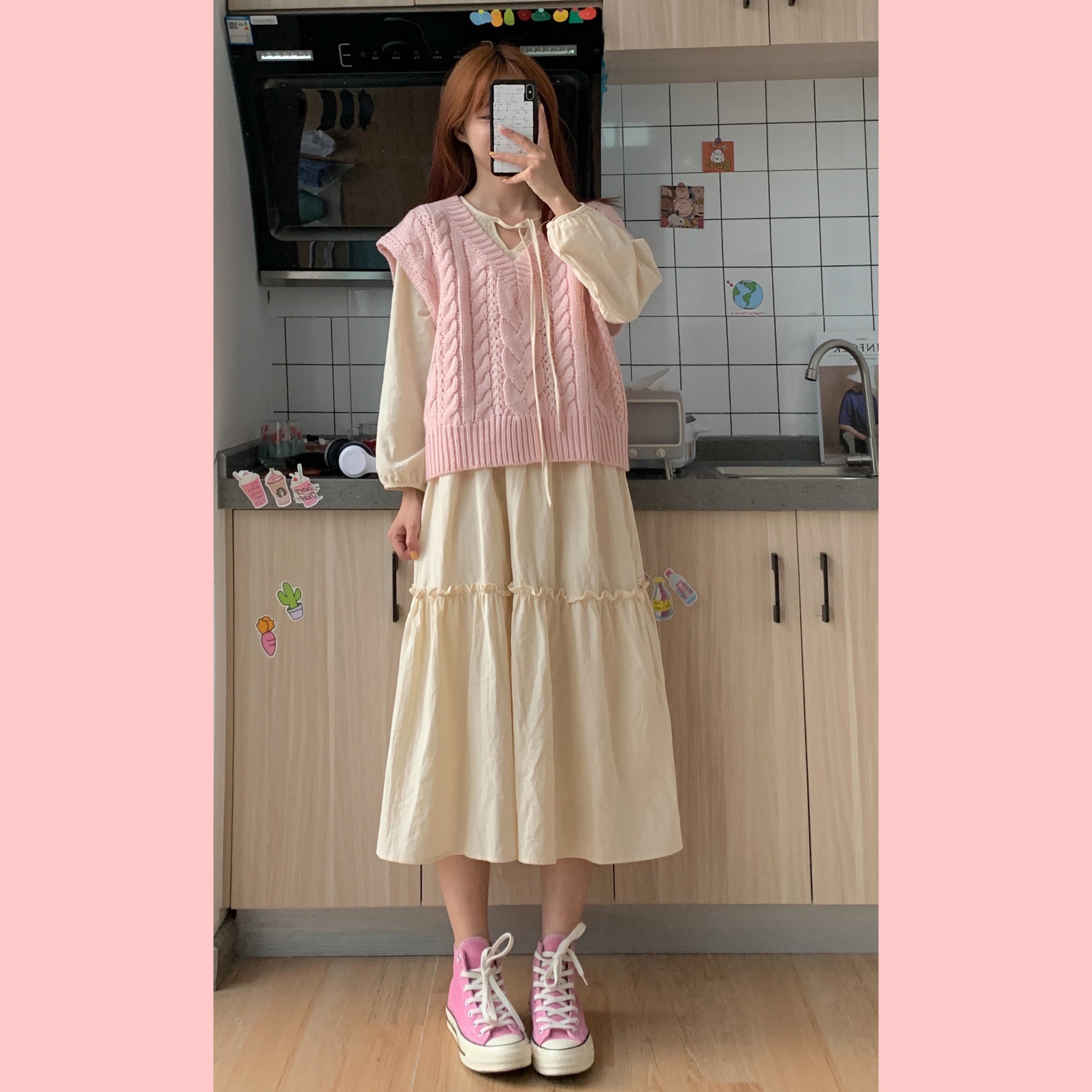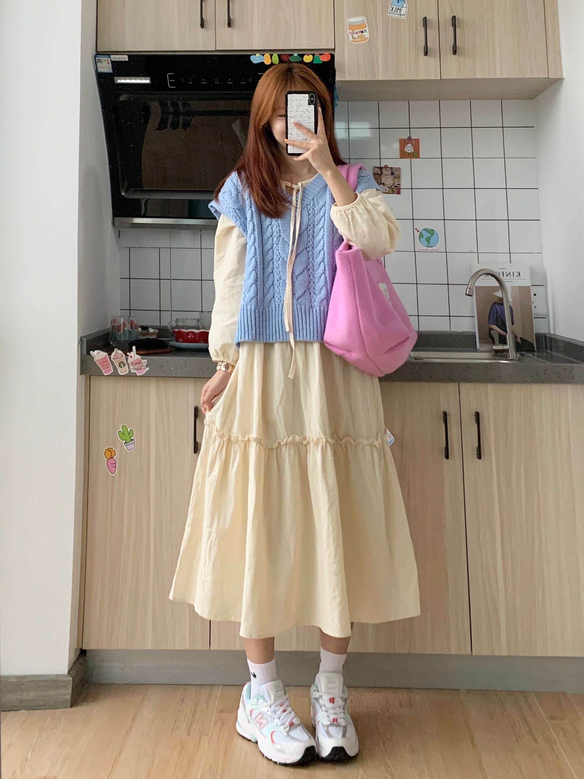 色:ベージュスカートワンピース,ブルーベストワンピース,ピンクベストワンピース