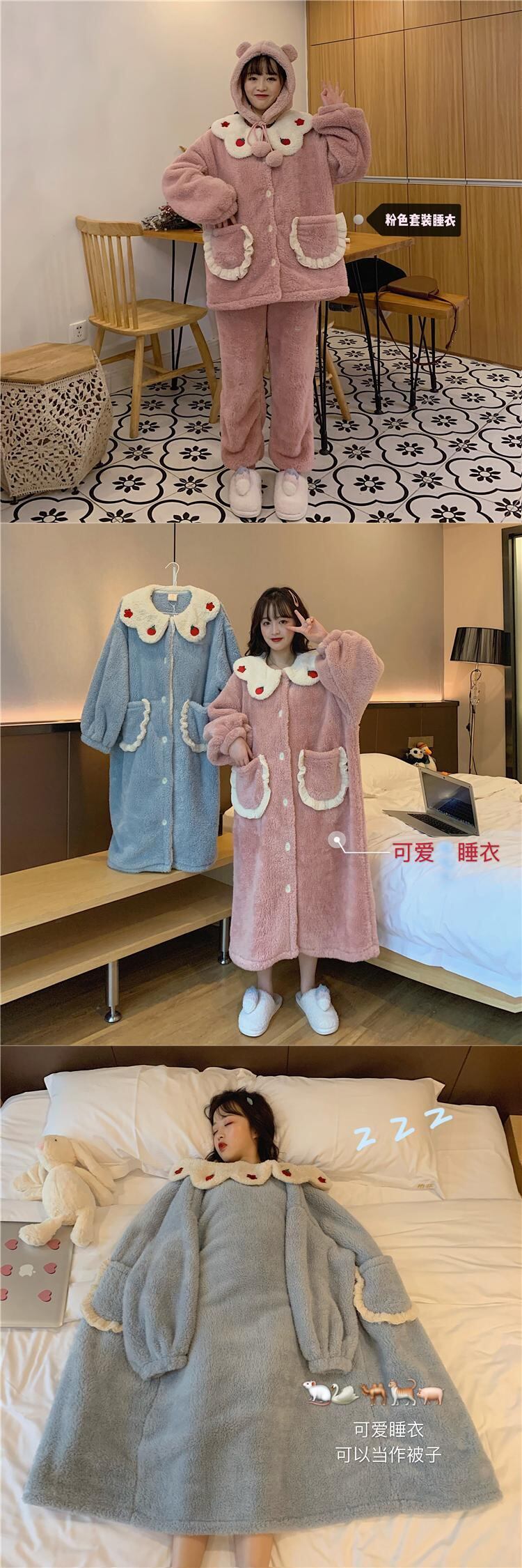 色:ピンクのスーツ,ピンクのナイトガウン,青いローブ