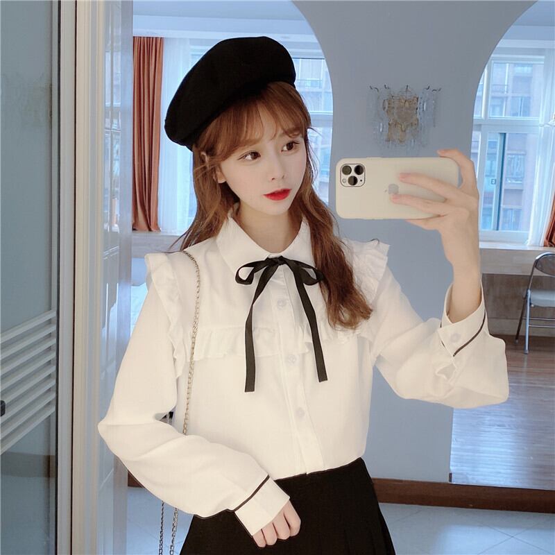 ✞ リボン白シャツブラウス♡トップス 大人女子☆ ロング ホワイト スウィート ✞ゴスロリ SM ミリ 甘ロリ クラロリ 和ロリ エレガント 黒ロリ 姫ロリ 華ロリ BB-BB52340123535