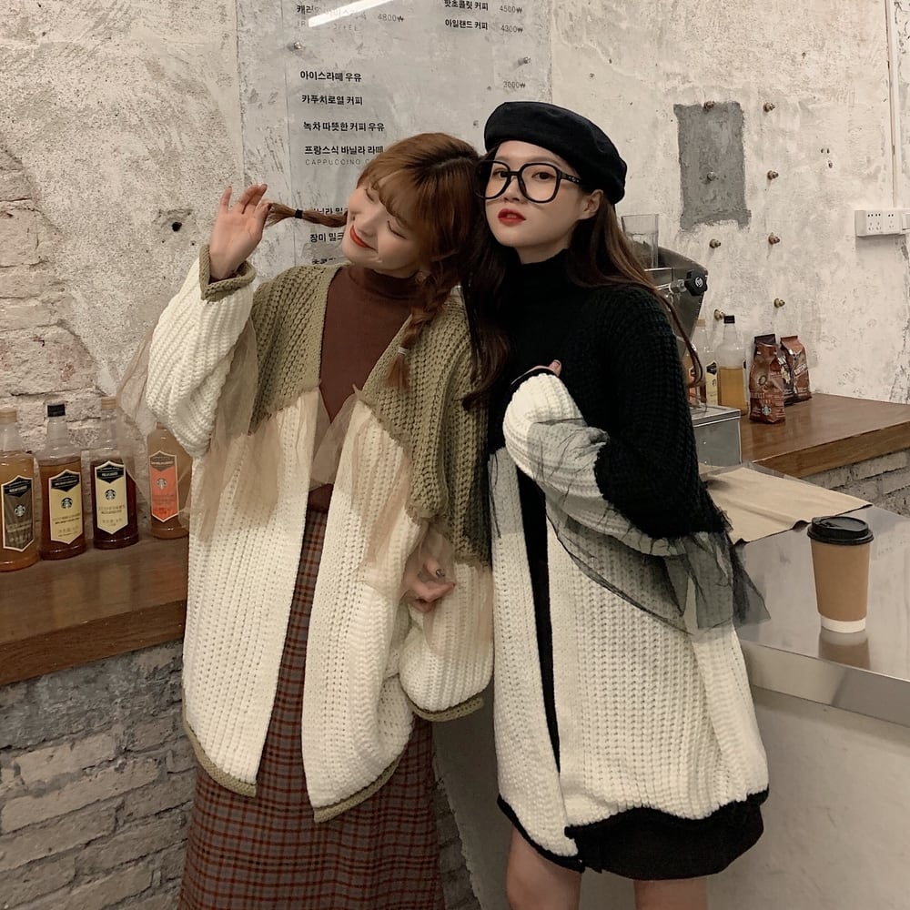 ✞ ♡セーター Vネックメッシュカラージャケット ロング スウィート ステッチ ✞ゴスロリ SM ミリ 甘ロリ クラロリ 和ロリ エレガント 黒ロリ 姫ロリ 華ロリ BB-BB61141381051
