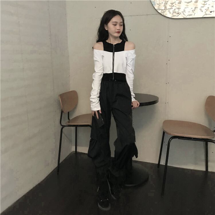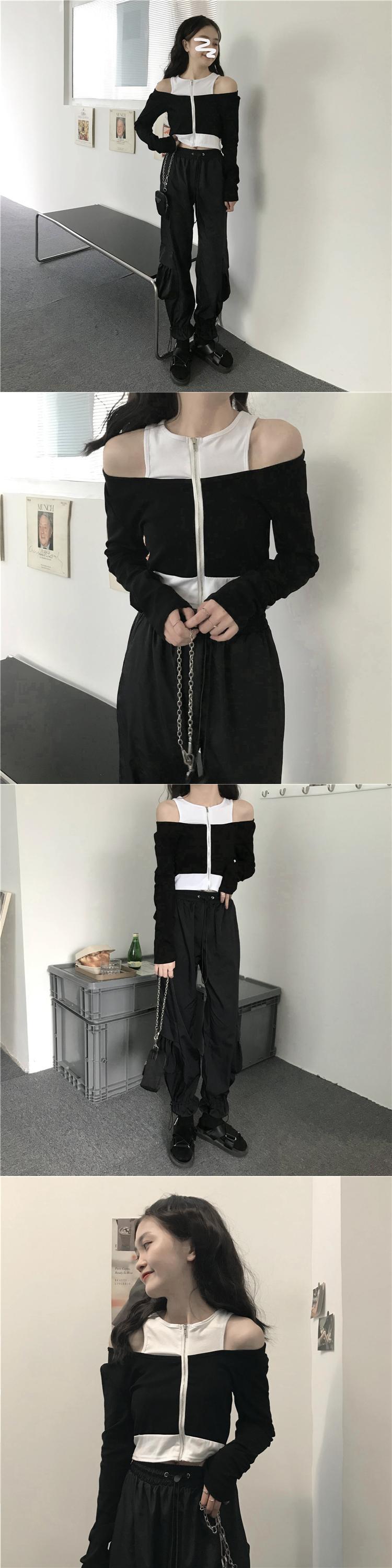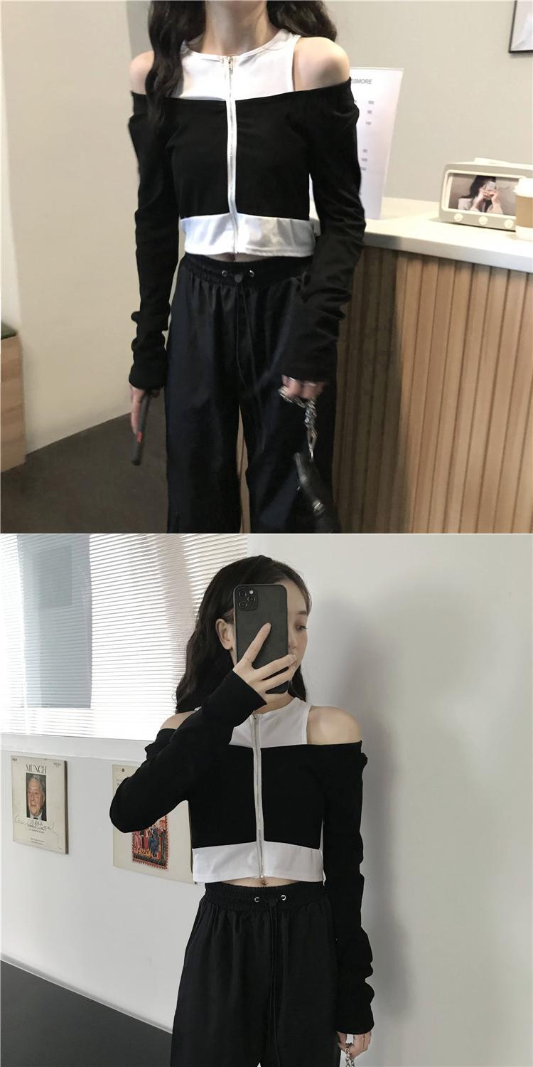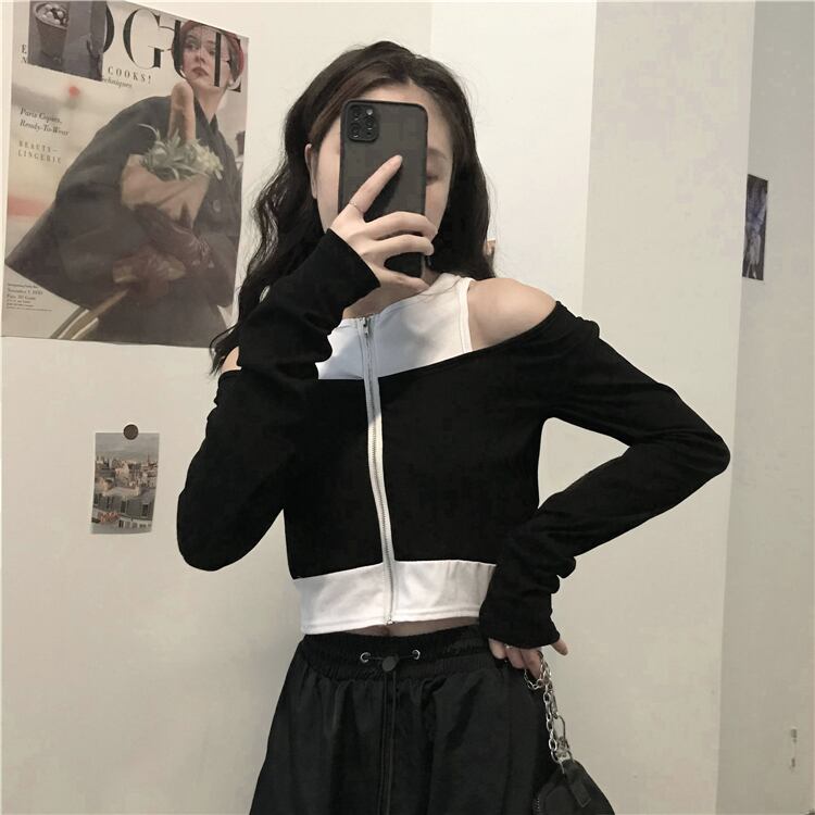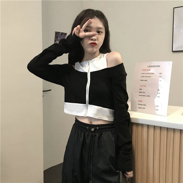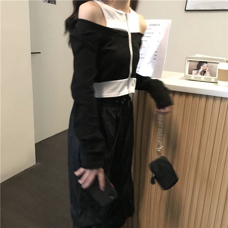 ✞ ♡カラーTシャツ レッドジッパーショート長袖スリーブジャケット ロング オフショルダー ✞ゴスロリ SM ミリ 甘ロリ クラロリ 和ロリ エレガント 黒ロリ 姫ロリ 華ロリ BB-BB82389647865