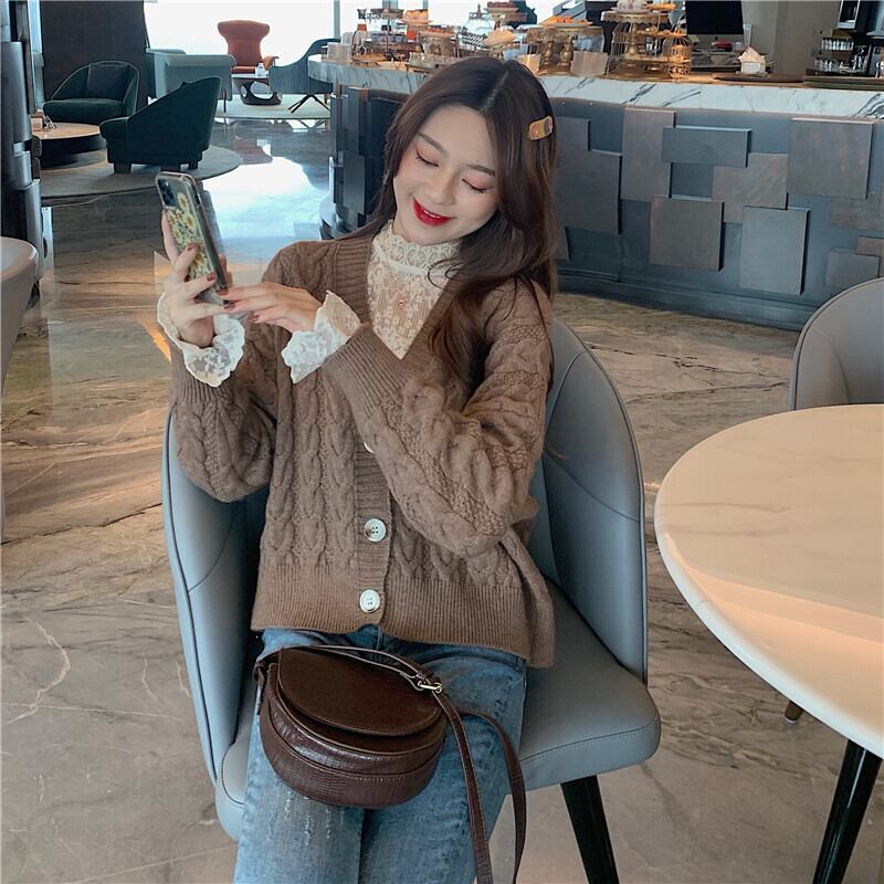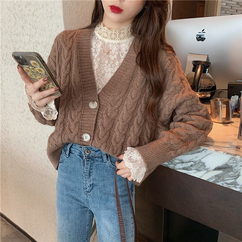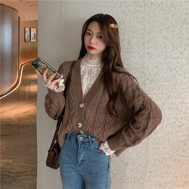 ✞ ウィンタースタンダードVネックショートニットカーディガンセーター コート ジャケット 大人女子☆ レトロ 冬物 ✞ゴスロリ SM ミリ 甘ロリ クラロリ 和ロリ エレガント 黒ロリ 姫ロリ 華ロリ BB-BB32132834603