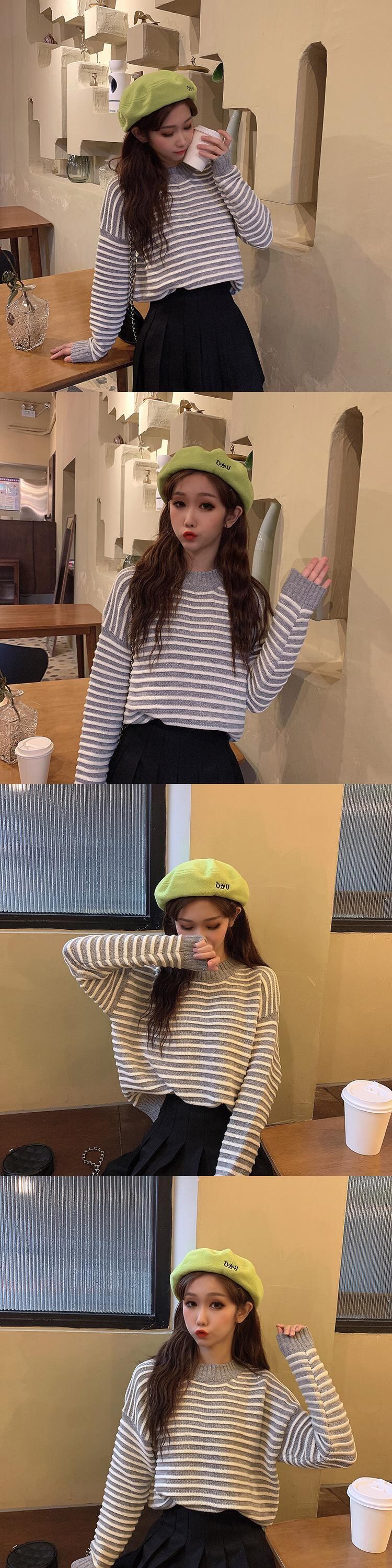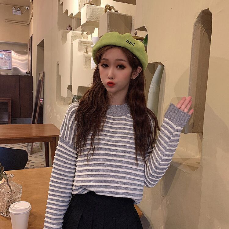 ✞ ♡スタンダードブラック白ストライプラウンドネックセーター ♥カワイイ♥ニットトップス 大人女子☆ ロング ホワイト レトロ スウィート ✞ゴスロリ SM ミリ 甘ロリ クラロリ 和ロリ エレガント 黒ロリ 姫ロリ 華ロリ BB-BB86998907937