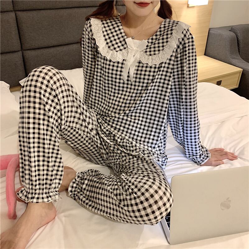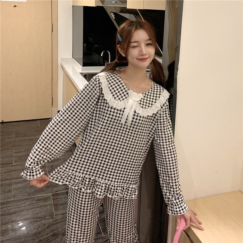 ✞ レースラウンドネック♥カワイイ♥ブラック白チェック柄カジュアル ホワイト スウィート ✞ゴスロリ SM ミリ 甘ロリ クラロリ 和ロリ エレガント 黒ロリ 姫ロリ 華ロリ BB-BB26954958274