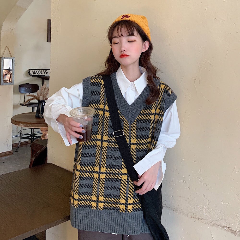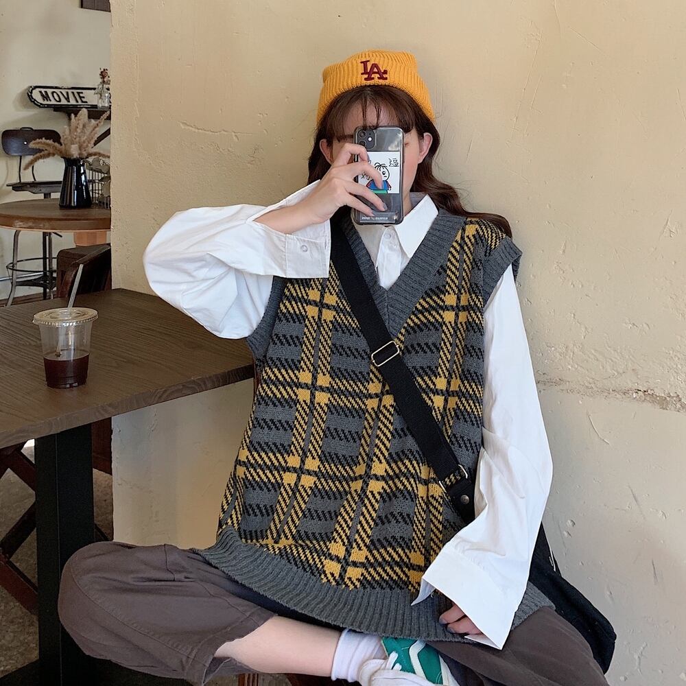 ✞ スタンダードニット大人女子☆♥カワイイ♥チェック柄Vネック レトロ ✞ゴスロリ SM ミリ 甘ロリ クラロリ 和ロリ エレガント 黒ロリ 姫ロリ 華ロリ BB-BB58090009631