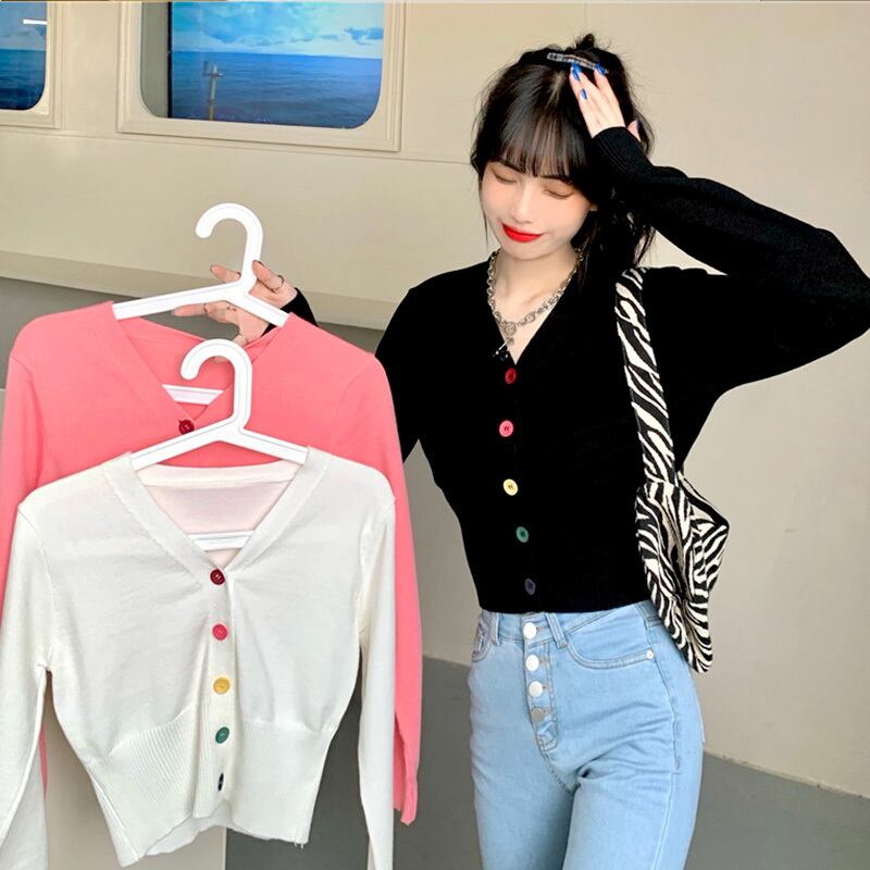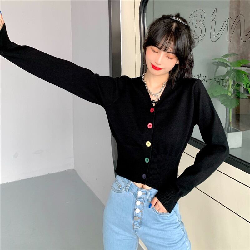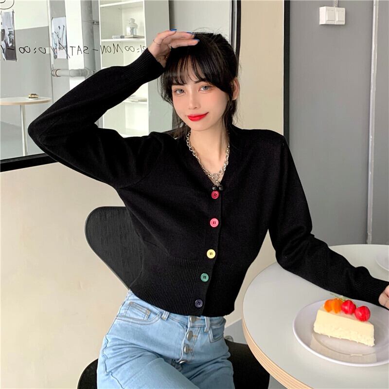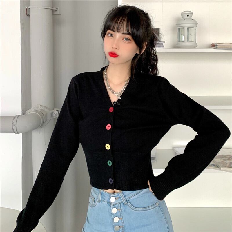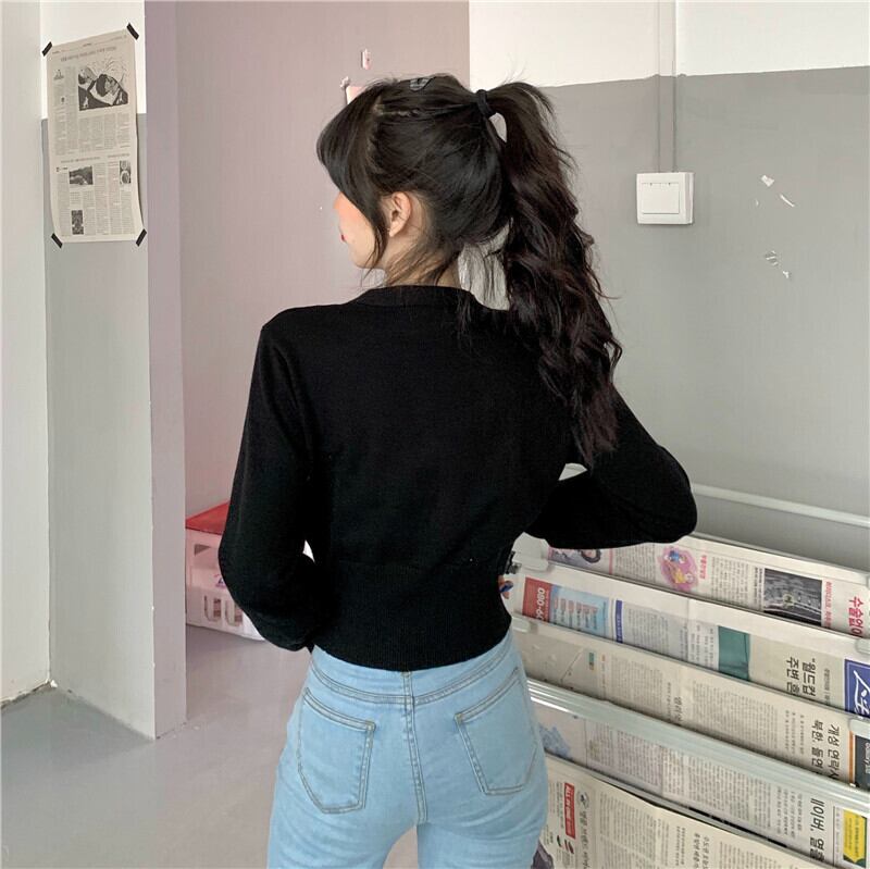 ✞ ニットカーディガン♡カラーボタンVネックシャツブラウスショートスリムトップス ロング ✞ゴスロリ SM ミリ 甘ロリ クラロリ 和ロリ エレガント 黒ロリ 姫ロリ 華ロリ BB-BB87357305325