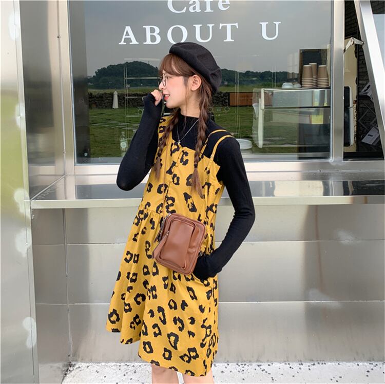 色:ヒョウ柄ワンピース,ブラックベースシャツワンピース