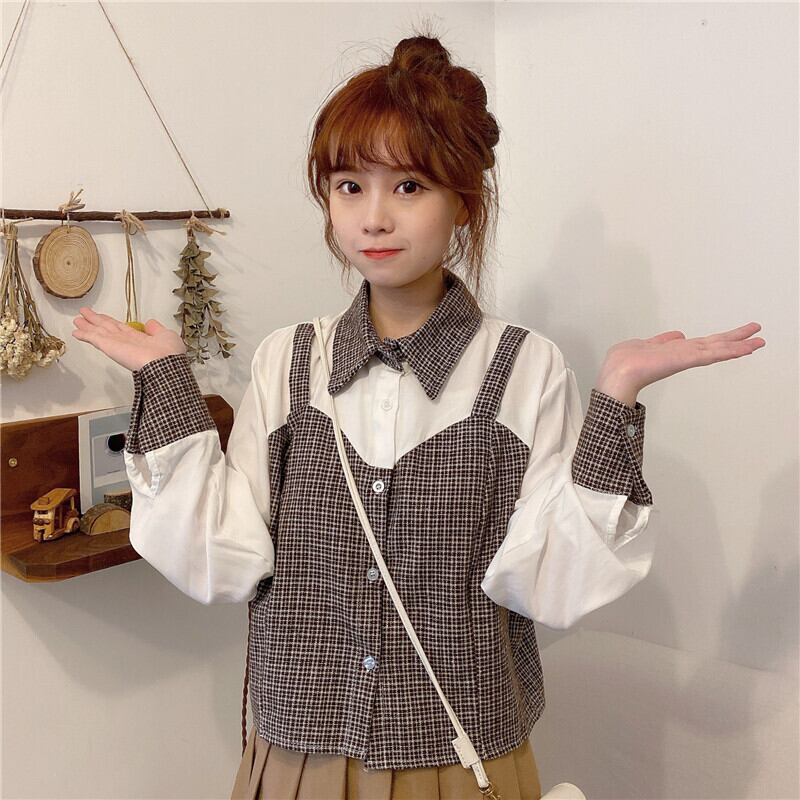 ✞ ♥カワイイ♥チェック柄ショートシャツブラウス ロング ランタンスリーブ ステッチ ✞ゴスロリ SM ミリ 甘ロリ クラロリ 和ロリ エレガント 黒ロリ 姫ロリ 華ロリ BB-BB37469727707