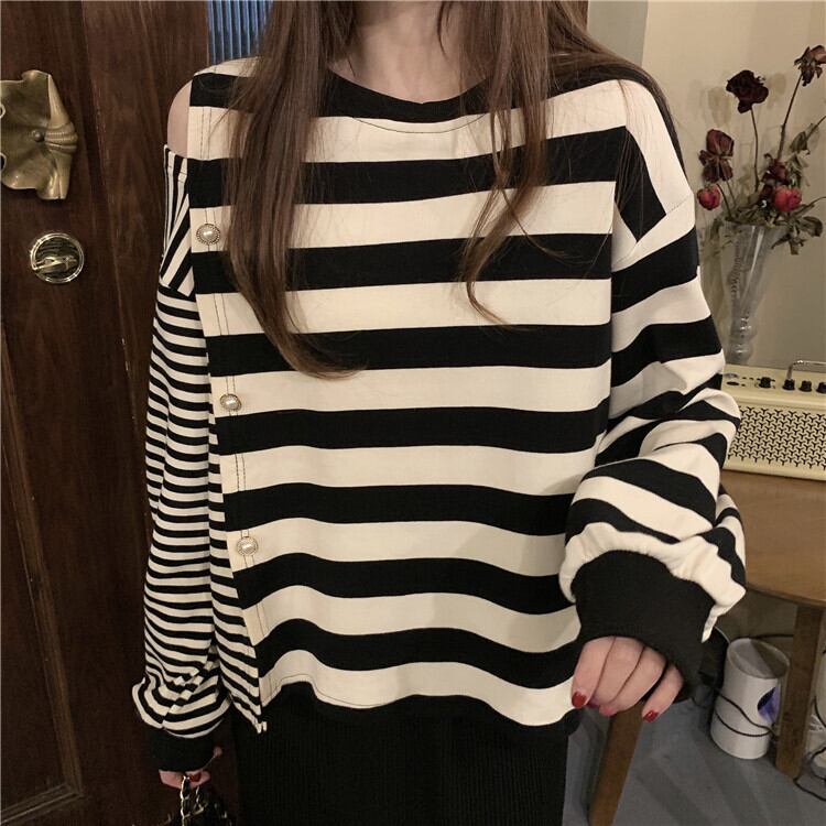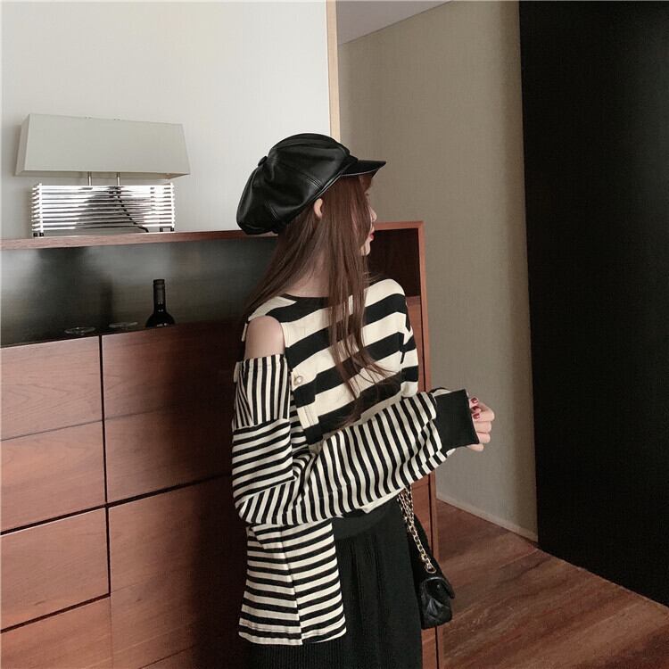 ✞ スタンダードストライプパールバックルセーター スリムスカート ロング レトロ オフショルダー 真珠 ステッチ ✞ゴスロリ SM ミリ 甘ロリ クラロリ 和ロリ エレガント 黒ロリ 姫ロリ 華ロリ BB-BB62974387277