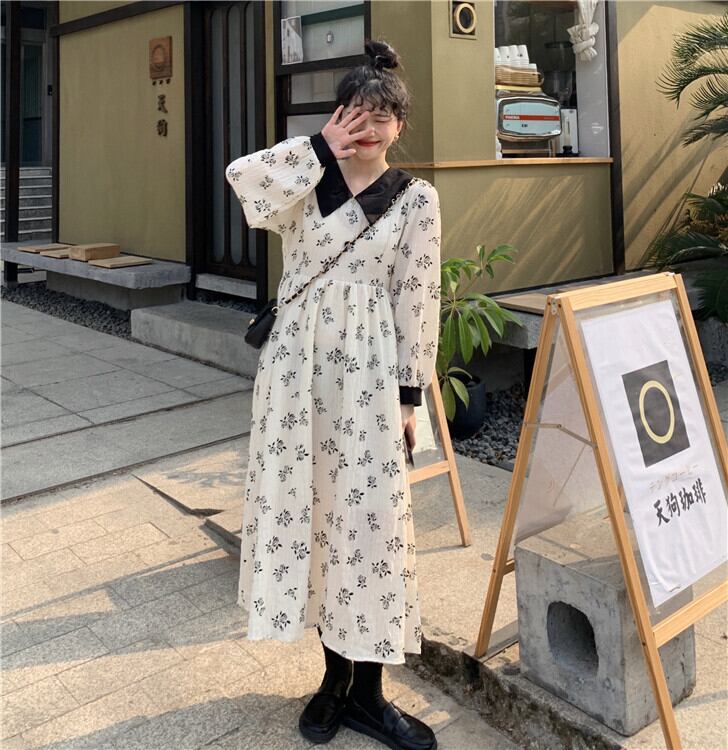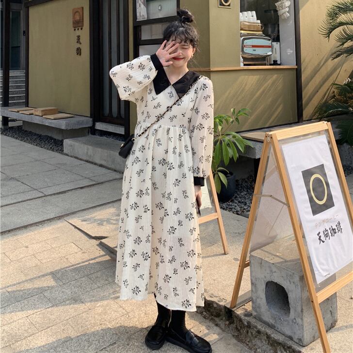 ✞ スタンダードカラー花柄スカート 長袖スリーブ ロング レトロ スウィート ✞ゴスロリ SM ミリ 甘ロリ クラロリ 和ロリ エレガント 黒ロリ 姫ロリ 華ロリ BB-BB20188506443