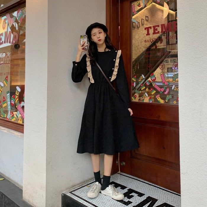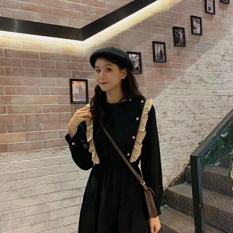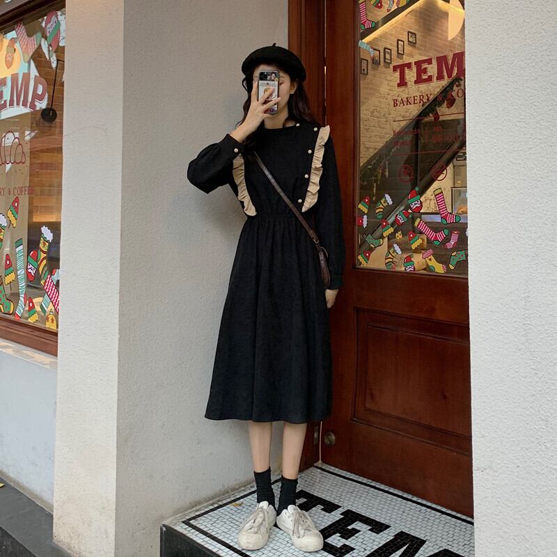 ✞レトロフリルラウンドネックワンピースドレスOP 秋冬✞ゴスロリ SM ミリ 甘ロリ クラロリ 和ロリ エレガント 黒ロリ 姫ロリ 華ロリ BB-BB12550629951