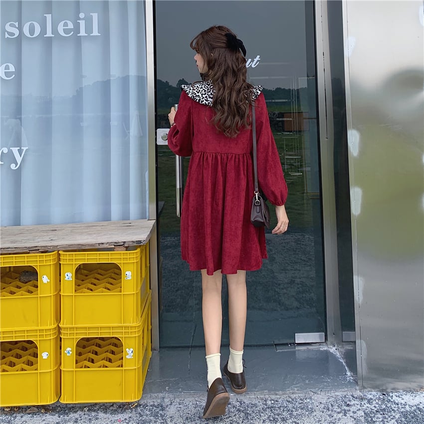 ✞ ドレス ワンピース♡スタンダードレオパードプリント柄コーデュロイスカート 大人女子☆ レトロ ✞ゴスロリ SM ミリ 甘ロリ クラロリ 和ロリ エレガント 黒ロリ 姫ロリ 華ロリ BB-BB62468294129