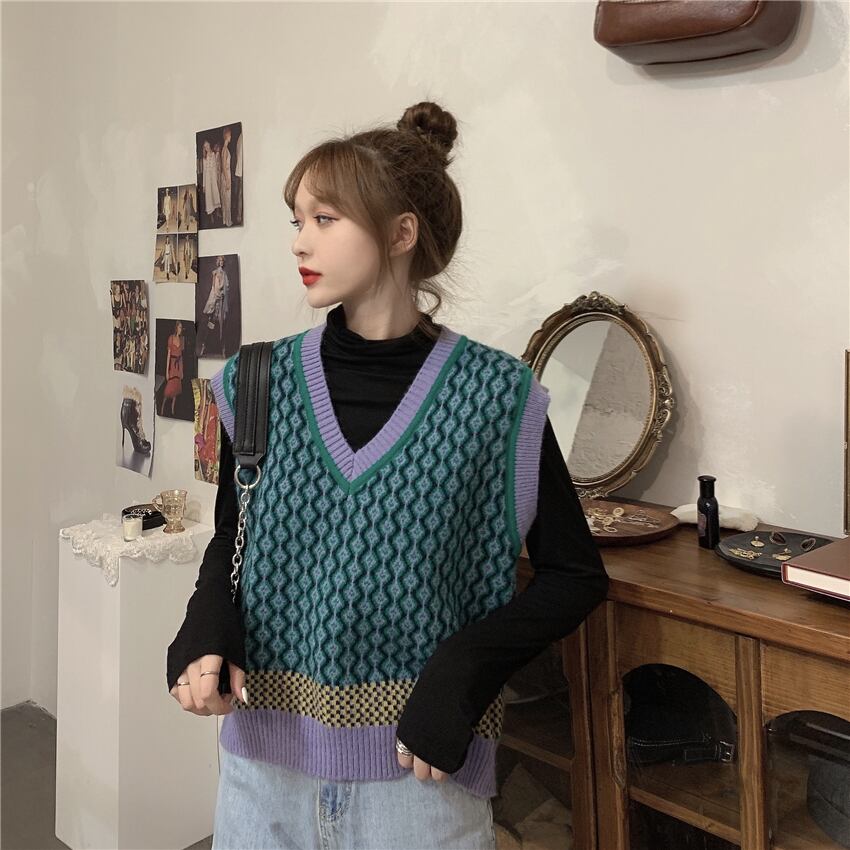✞ スタンダードカラージャカードノースリーブVネックプルオーバー ニット レトロ ✞ゴスロリ SM ミリ 甘ロリ クラロリ 和ロリ エレガント 黒ロリ 姫ロリ 華ロリ BB-BB98070397584