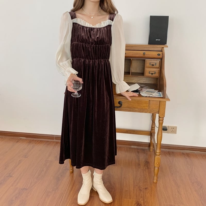 ✞ スタンダードメッシュスリムベルベット ランタンスリーブ レトロ スクウェア ステッチ ✞ゴスロリ SM ミリ 甘ロリ クラロリ 和ロリ エレガント 黒ロリ 姫ロリ 華ロリ BB-BB4724300028