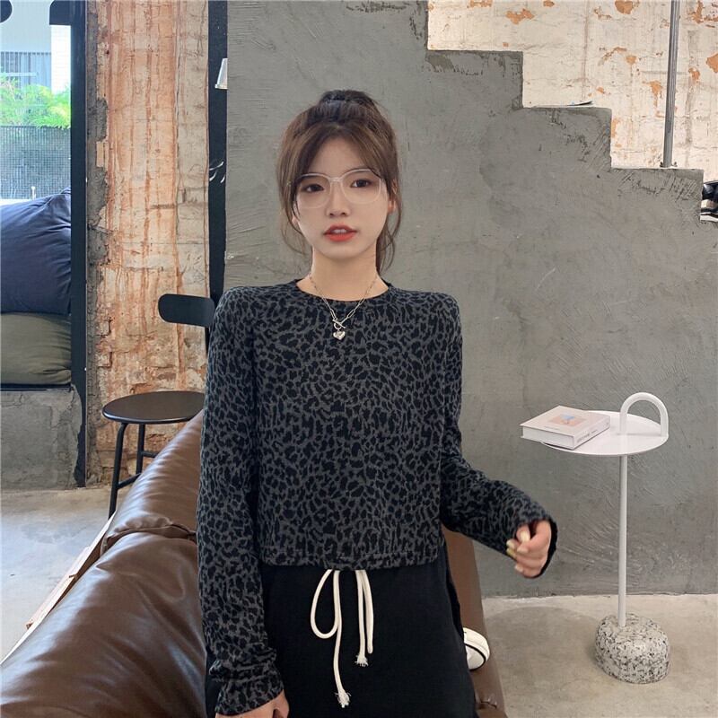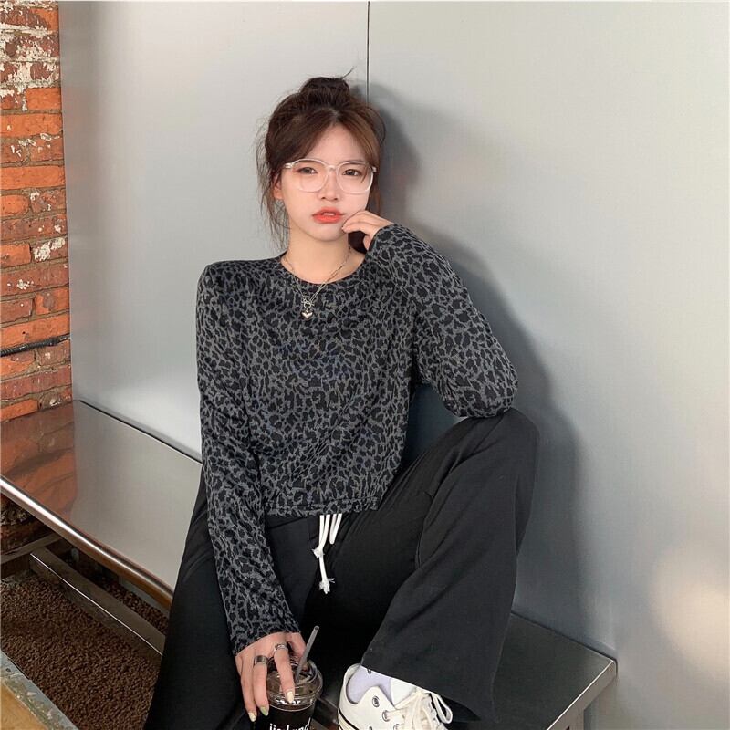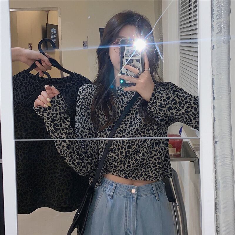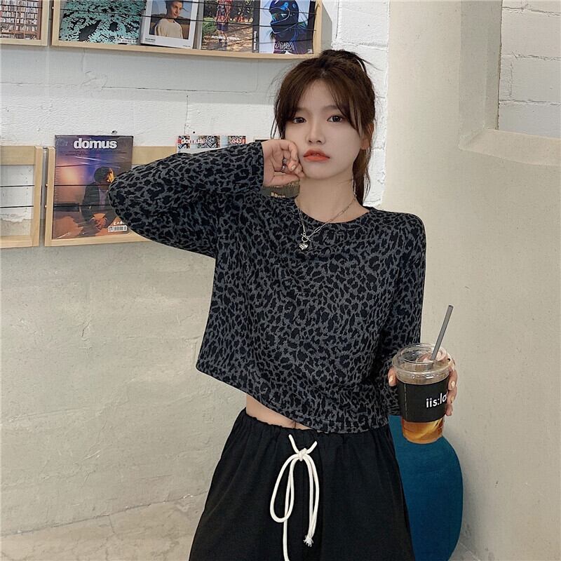 ✞ Tシャツ ♡スタンダードレオパードラウンドネックプルオーバー ショートクロップドトップス ロング レトロ ✞ゴスロリ SM ミリ 甘ロリ クラロリ 和ロリ エレガント 黒ロリ 姫ロリ 華ロリ BB-BB40866411033