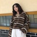 ✞ Vネックスタンダードカラーストライプフードセーター 大人女子☆ ロング ランタンスリーブ レトロ ✞ゴスロリ SM ミリ 甘ロリ クラロリ 和ロリ エレガント 黒ロリ 姫ロリ 華ロリ BB-BB68162931767