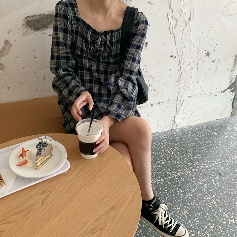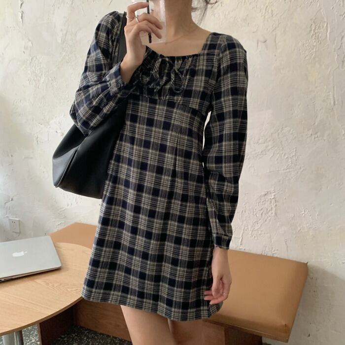 ✞ スタンダード★ショート長袖スリーブチェック柄 ロング レトロ スクウェア ✞ゴスロリ SM ミリ 甘ロリ クラロリ 和ロリ エレガント 黒ロリ 姫ロリ 華ロリ BB-BB48065703892