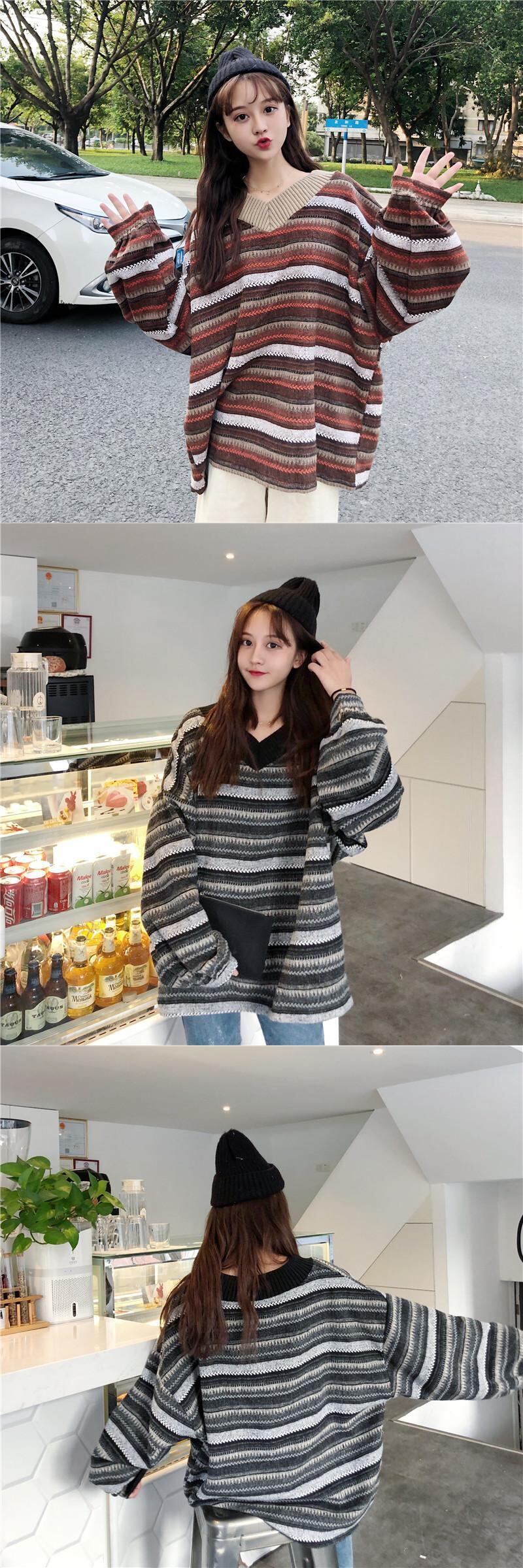 ✞ スタンダードストライプ♡セーター 大人女子☆ウィンターVネックスリーブトップス ロング レトロ 冬物 ✞ゴスロリ SM ミリ 甘ロリ クラロリ 和ロリ エレガント 黒ロリ 姫ロリ 華ロリ BB-BB92203262163