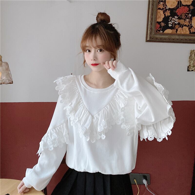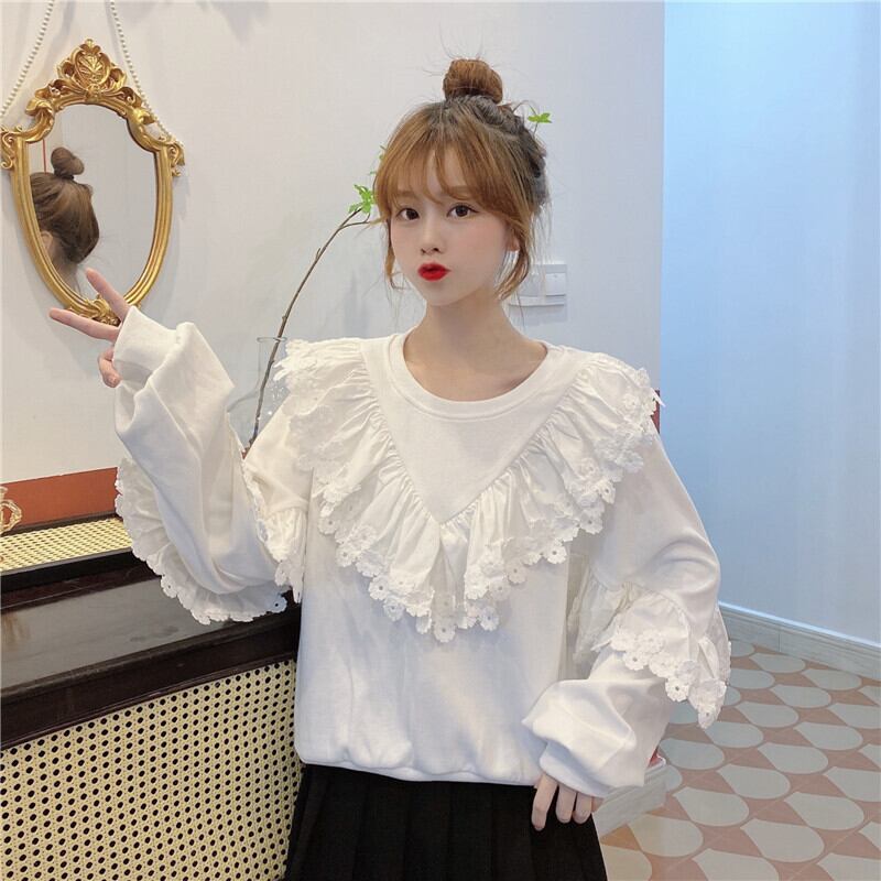 ✞ スウェット ラウンドネックレースプルオーバー トップス ロング スウィート ステッチ ✞ゴスロリ SM ミリ 甘ロリ クラロリ 和ロリ エレガント 黒ロリ 姫ロリ 華ロリ BB-BB89493721029