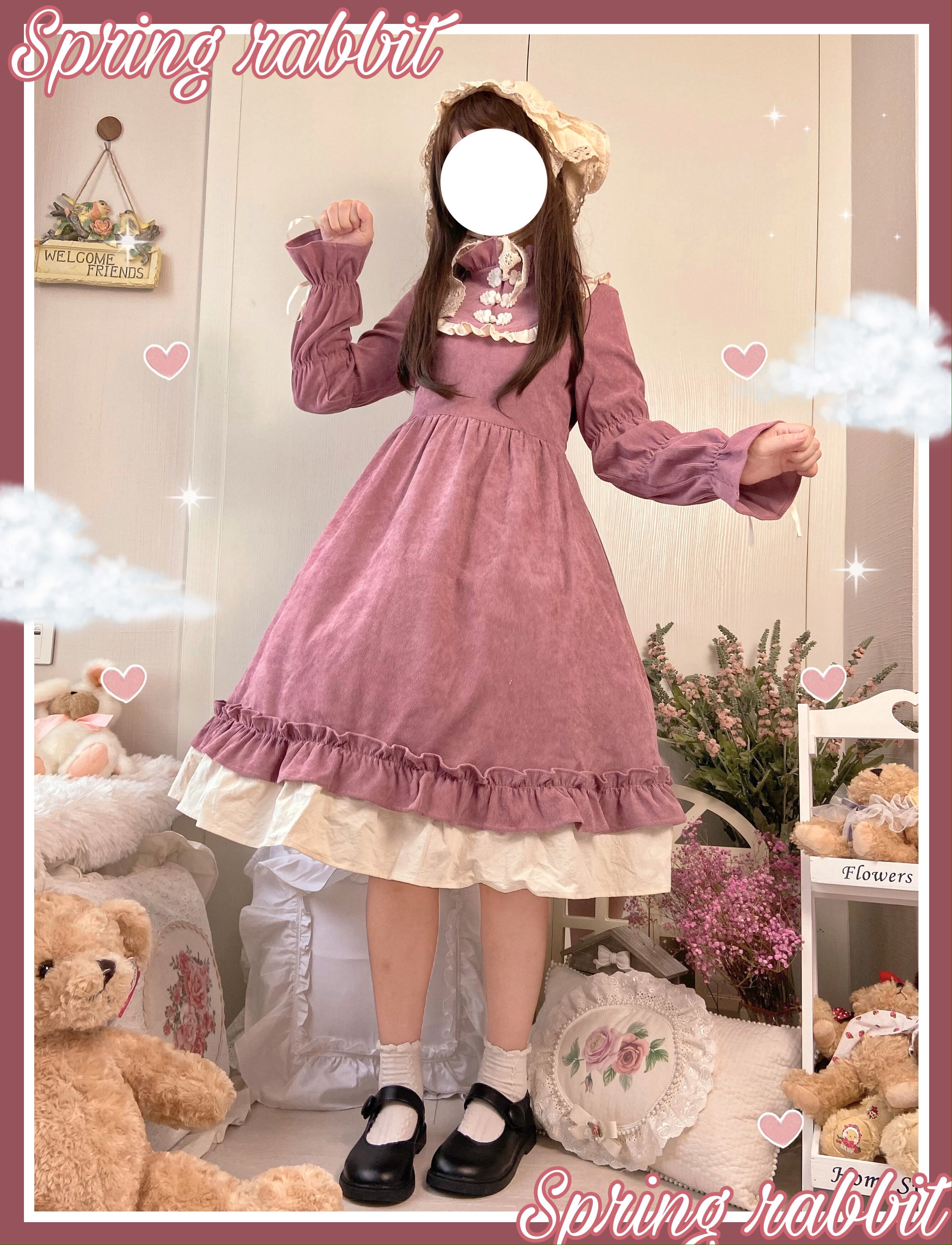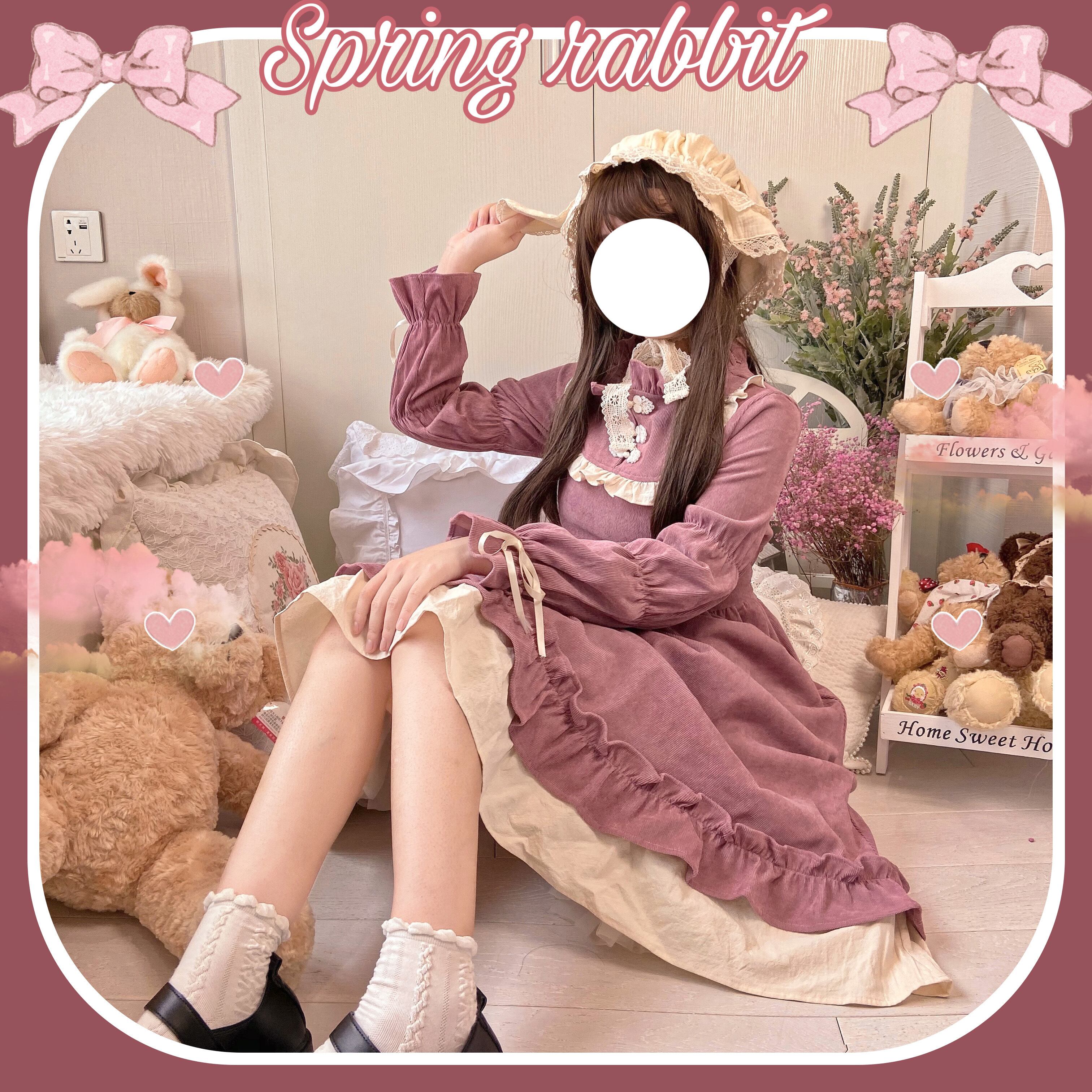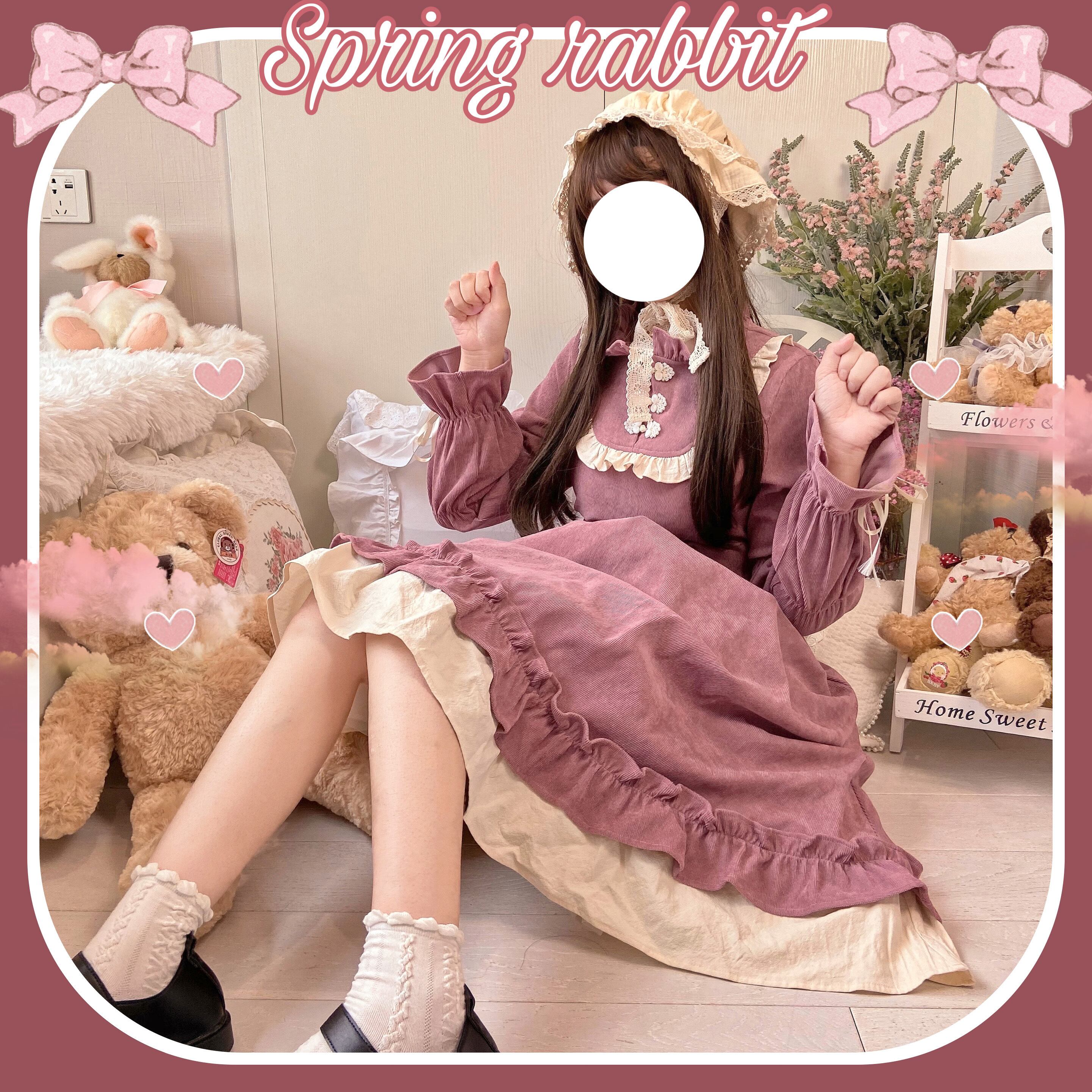 ✞ コーデュロイレーススリーブドレス ワンピースオータム 秋物 ✞ゴスロリ SM ミリ 甘ロリ クラロリ 和ロリ エレガント 黒ロリ 姫ロリ 華ロリ BB-BB99337354612