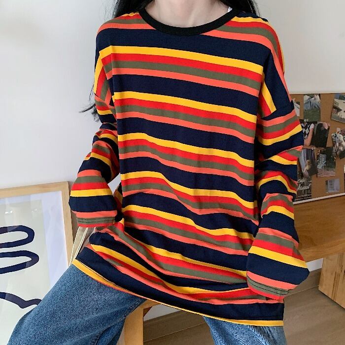 ✞ スタンダードストライプセーター ラウンドネックプルオーバー トップス ロング レトロ ✞ゴスロリ SM ミリ 甘ロリ クラロリ 和ロリ エレガント 黒ロリ 姫ロリ 華ロリ BB-BB54872323242