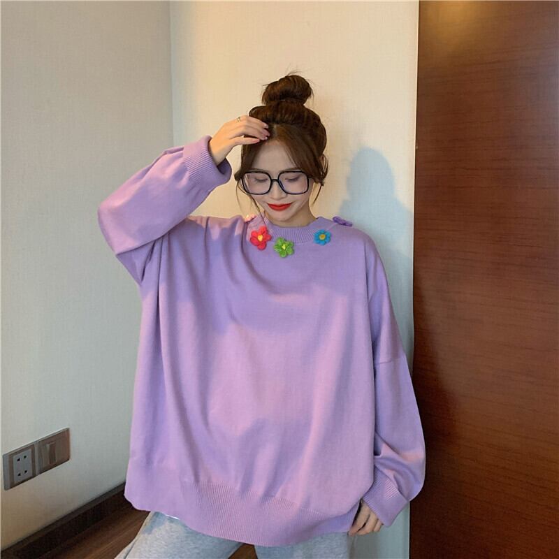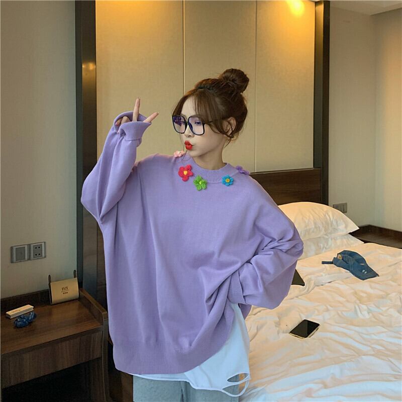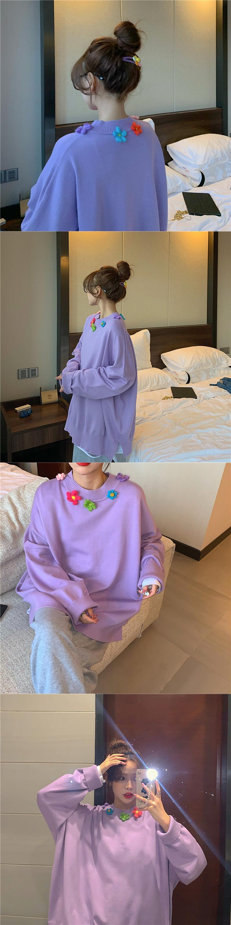 ✞ オータムラウンドネック花柄ニットセーター 大人女子☆ ロング スウィート 秋物 フラワーデザイン ステッチ ✞ゴスロリ SM ミリ 甘ロリ クラロリ 和ロリ エレガント 黒ロリ 姫ロリ 華ロリ BB-BB38368578571