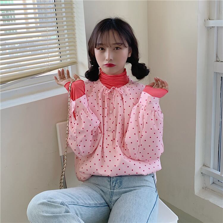✞ ♡ラウンドネック長袖スリーブプリントシャツブラウス ロング スウィート ✞ゴスロリ SM ミリ 甘ロリ クラロリ 和ロリ エレガント 黒ロリ 姫ロリ 華ロリ BB-BB43297429589