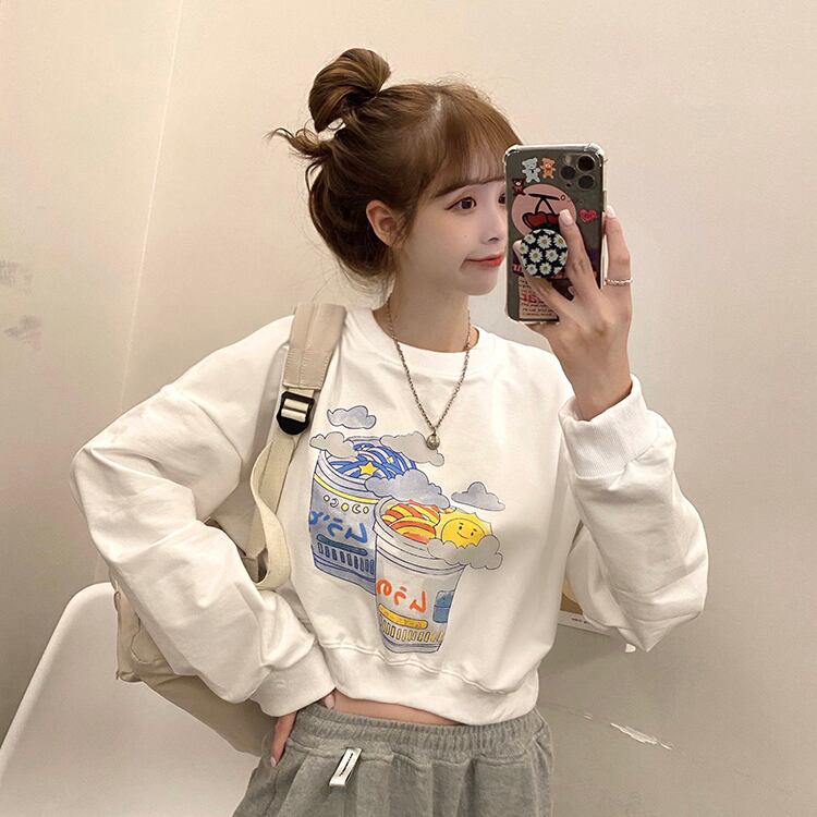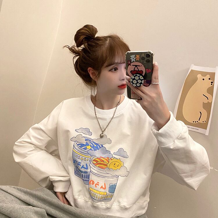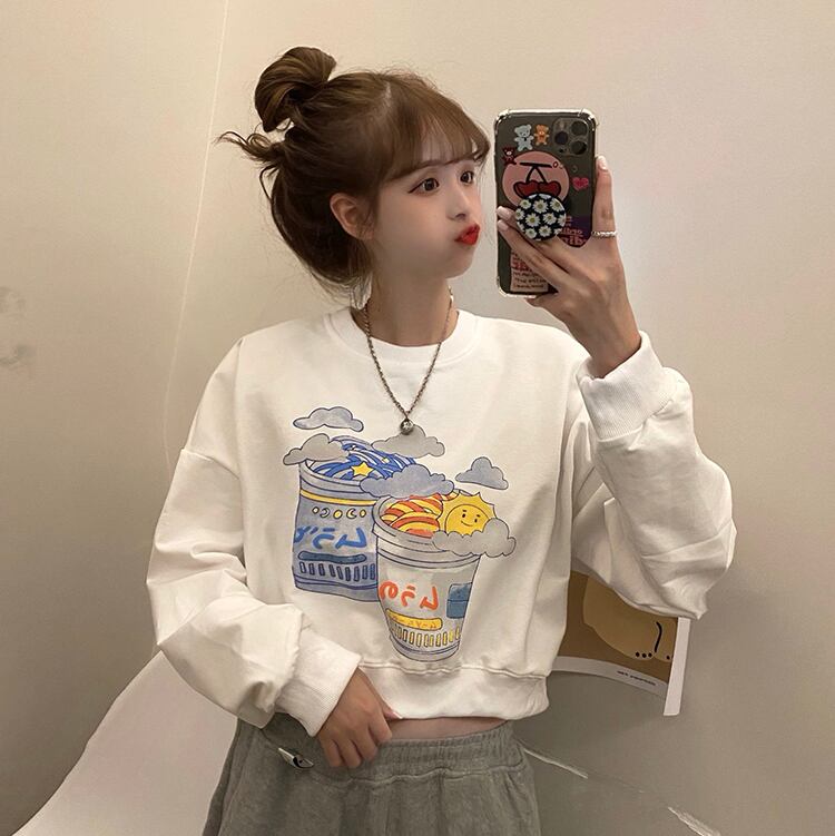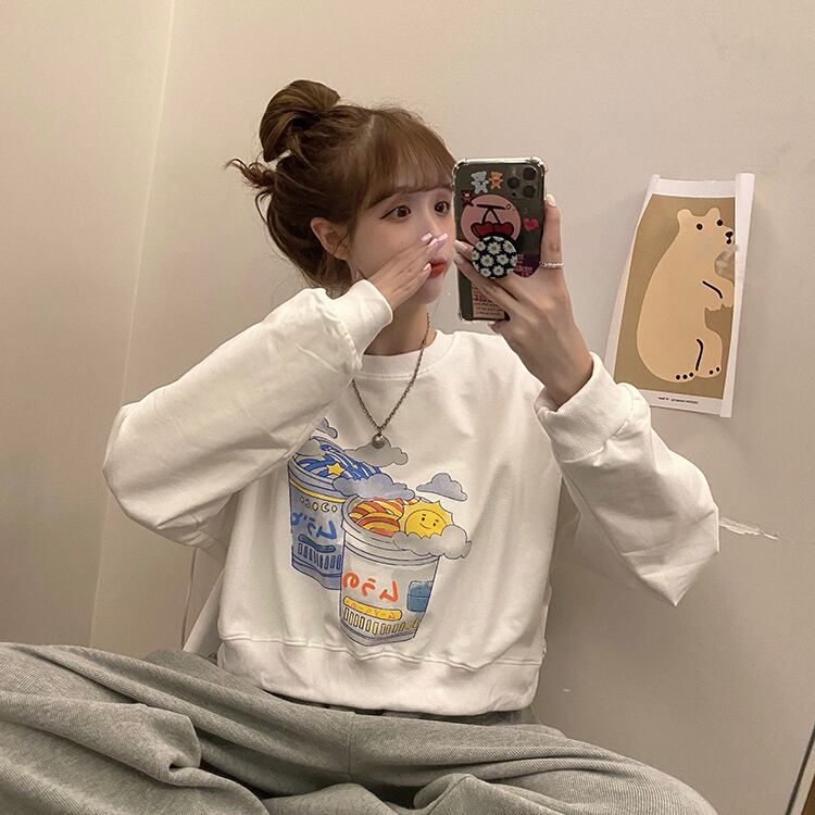 色:白い水彩インスタントヌードルセーター,黒の水彩インスタントヌードルセーター