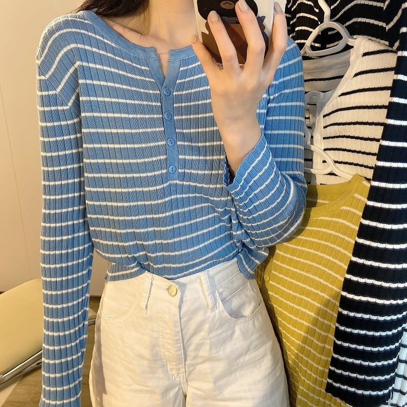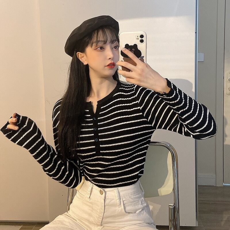 ✞ ラウンドネックカラーストライプショートセーター トップス 大人女子☆ ロング スウィート ✞ゴスロリ SM ミリ 甘ロリ クラロリ 和ロリ エレガント 黒ロリ 姫ロリ 華ロリ BB-BB91237875745