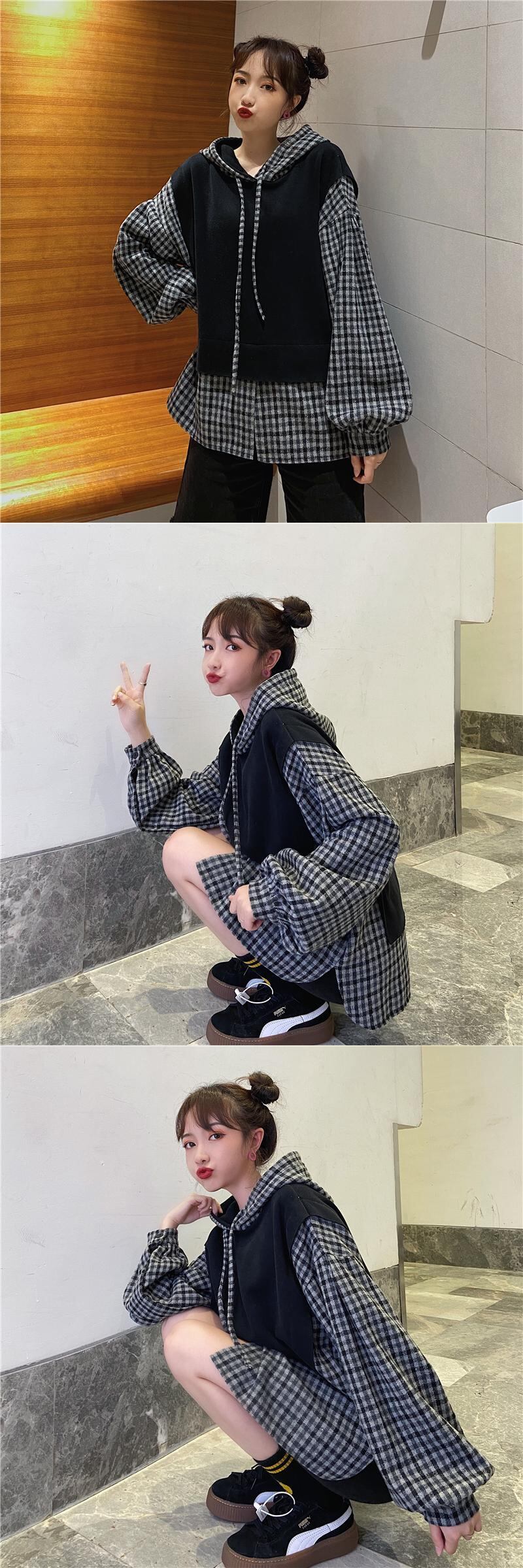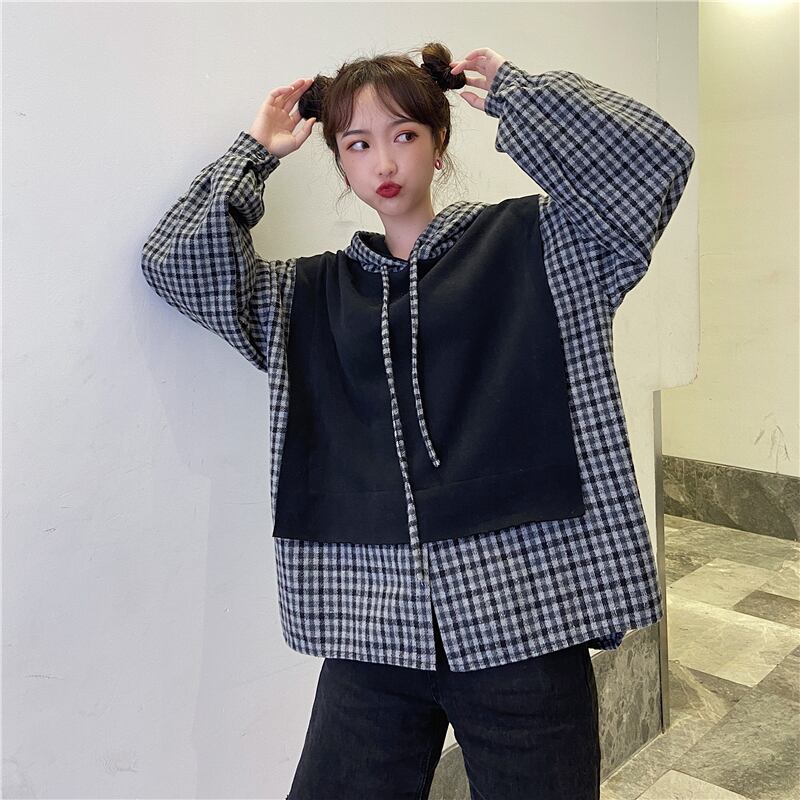 ✞ フードセーター ウィンター♡スタンダードチェック柄 ロング レトロ 冬物 ✞ゴスロリ SM ミリ 甘ロリ クラロリ 和ロリ エレガント 黒ロリ 姫ロリ 華ロリ BB-BB77440377116